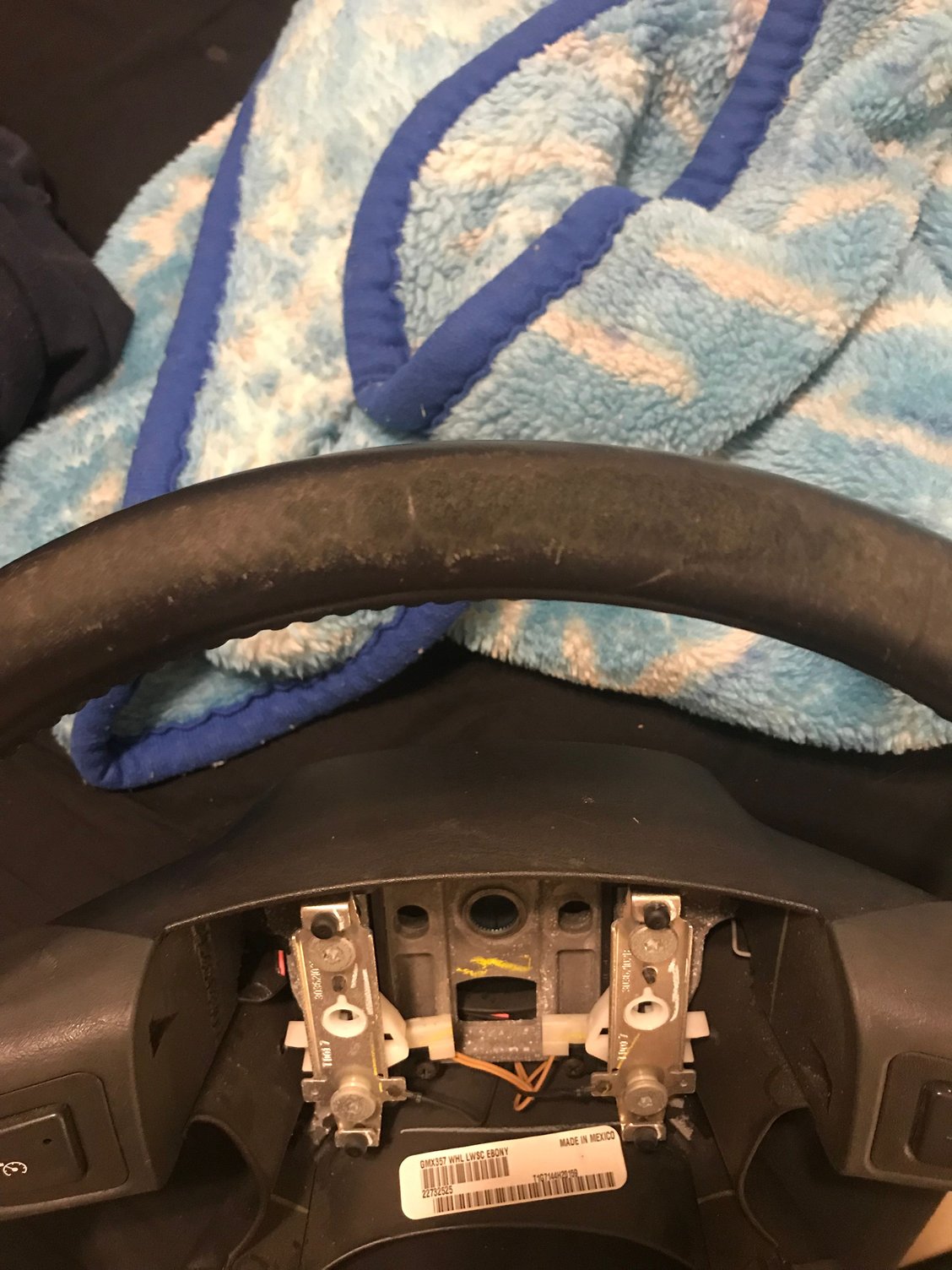 It’s long since stopped smelling of anything other than the vinyl/fabric paint I used to recolor it... the professionals were doing this inside a customer car, so I never figured outgassing to be an issue... still trying to figure out how to remove the original wheel. I think the procedure for unclipping the airbag is far more complex for the 03-04 wheel than for the 05-07