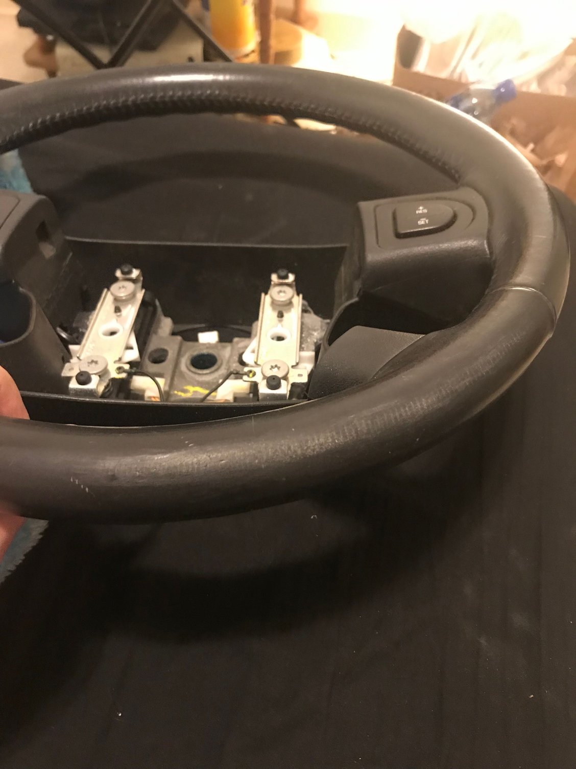anyway heres where here it is now, I need to buy some finer grit paper and go over it again and then re-dye the wheel. I also need to fix the badge in the airbag, as it’s beat to crap... you can still see the damage a little but you can’t feel it