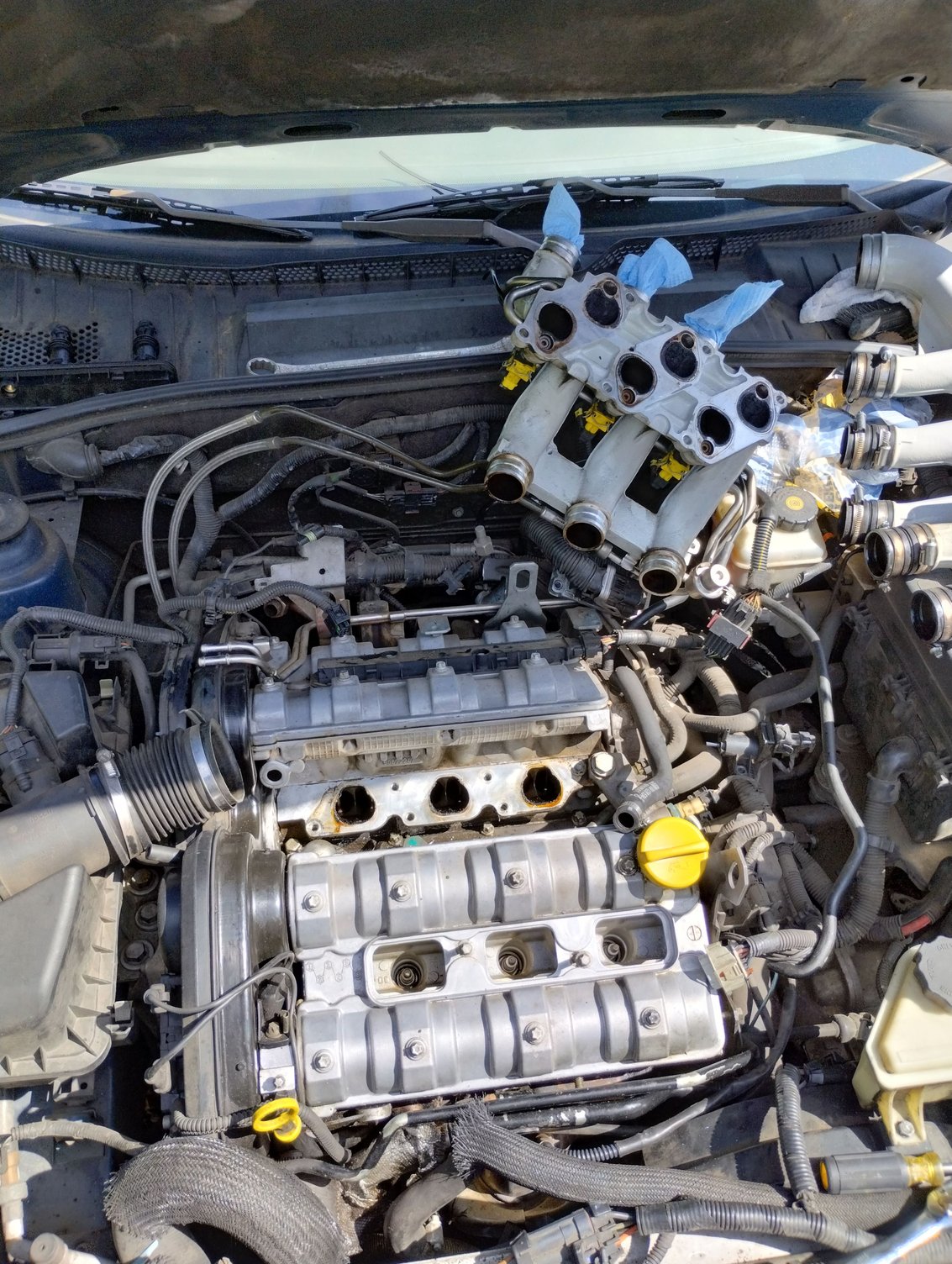 Hello I have a 2000 3.0 Saturn Saturn lw2 I purchased this car a few months back. It starts and runs fine sometimes and other times it's hard to start and runs rough and stumbles when it goes to shift or shifts hard but I don't think it's the transmission. I finally got the hood open due to the release being broke and noticed the front valve cover was leaking and it must be under pressure because oil seemed to be leaking slowly from the cap. First thing I wanted to do is replace the valve cover gasket. I got the upper plenum taken off and realized the upper intake is in the way. Do
