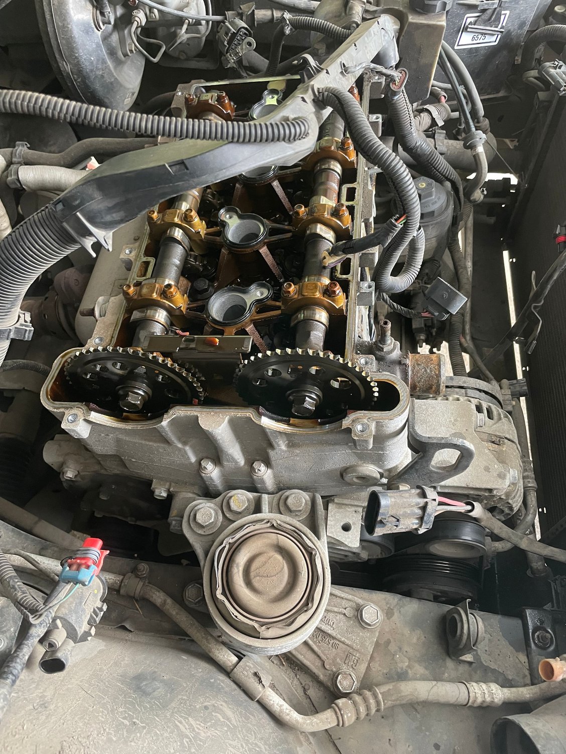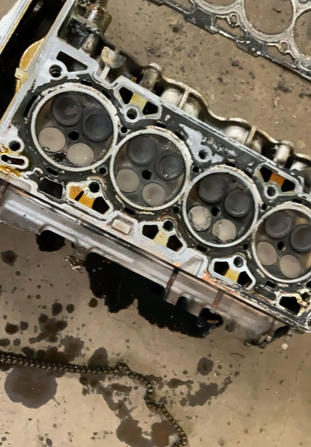 The next and most recent is a 2002 Oldsmobile Alero L61 in a 2000 LS1 Saturn. It was transplanted from the wrecked Oldsmobile into the Saturn with 150k miles and running good. No good mileage numbers due to a faulty odometer on the Saturn but probably 225k on the engine. First check engine light last week for a random misfire, P0300. Engine sounded off and my granddaughter said it was different than it has been. No noises, engine was quiet but not as smooth as usual. Thursday it quit almost home from work, towed the rest of the way. Her comment was that the power steering quit as it died coming up the hill. It broke a chain and bent most of the valves.