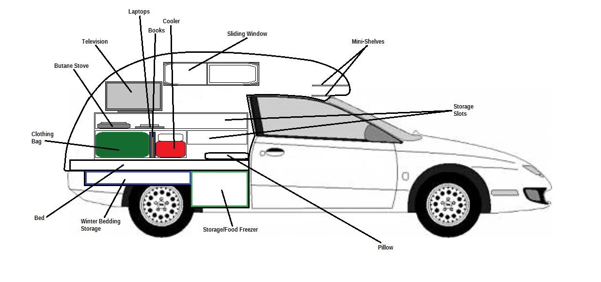 Lol I'm used to it. I will most definitely ask how she did the computer for the car (when I watch her do it, I can only make of electric-rubbish -I'm old fashioned). I l work for environment canada as a storm chaser which lets me travel all of canada. Some mods were deleting the rear seats, installing a twin bed with wooden frame, some plain window curtains, miniature shelf table behind the passenger seat (one day will become a sink), 4x feather blankets for those deadly winter months (they work a charm) and disabled trunk access (who needs a trunk anyways) lol.