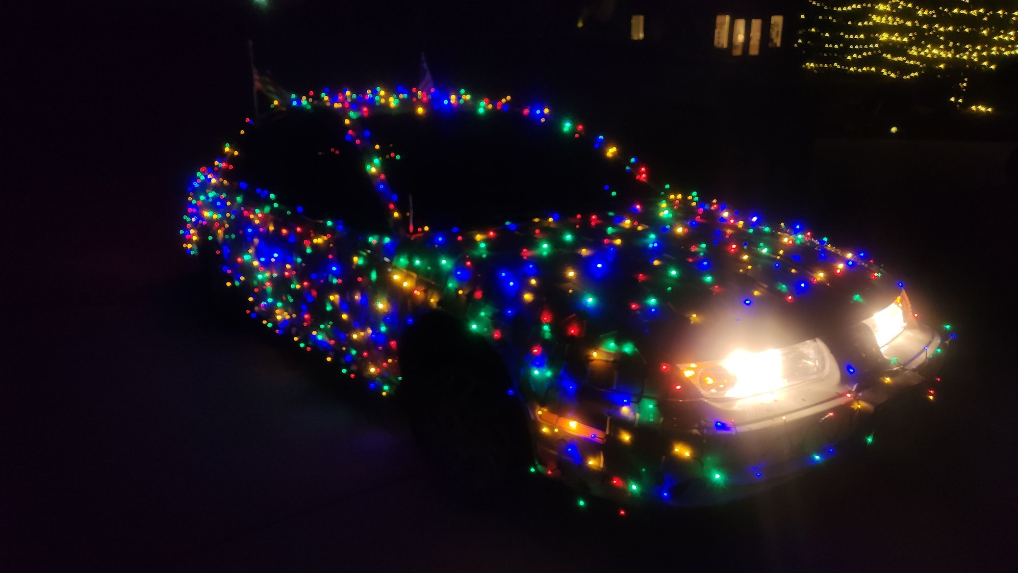 Hello, this is my saturn sl2, this is a picture from when I put lights on it and im currently fighting with the tape removal process now that christmas is over. Its a 5 spd manual, 350k, all stock with small modifications (but I plan to mod it more), and Ive owned it for about a year now
