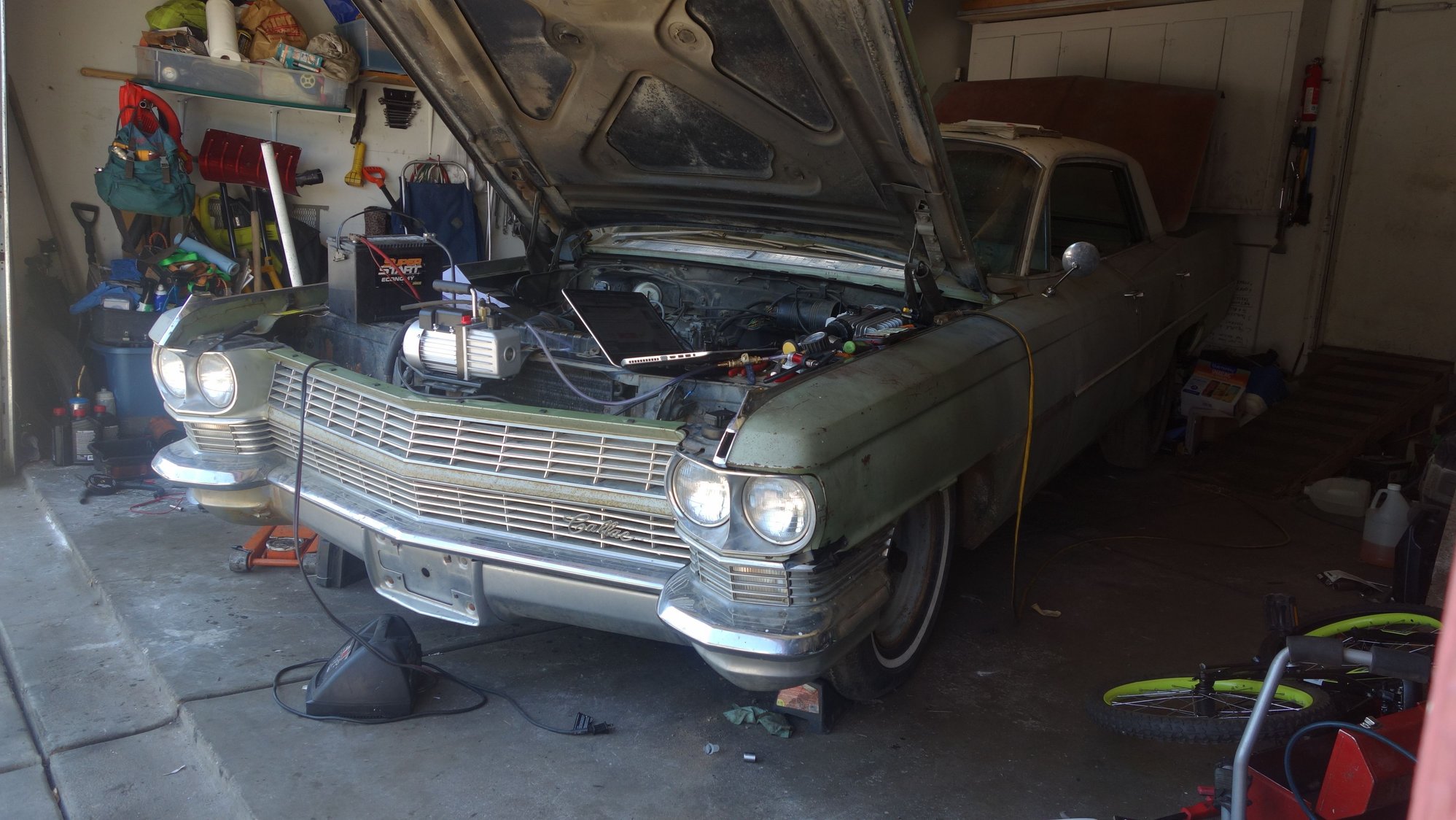 Now THAT is what I call a land yacht. I don't know anything about Cadillacs as my Dad was a Mopar guy and I grew up working on the big Chrysler land yachts. The engineering was totally different from GM and my Dad DESPISED GM for some reason. He always said they were pieces of junk and GM stole a lot of ideas from other companies. IDK and don't care. Deep down, I'm still a Mopar man and can't help you with what I think is a very cool project.