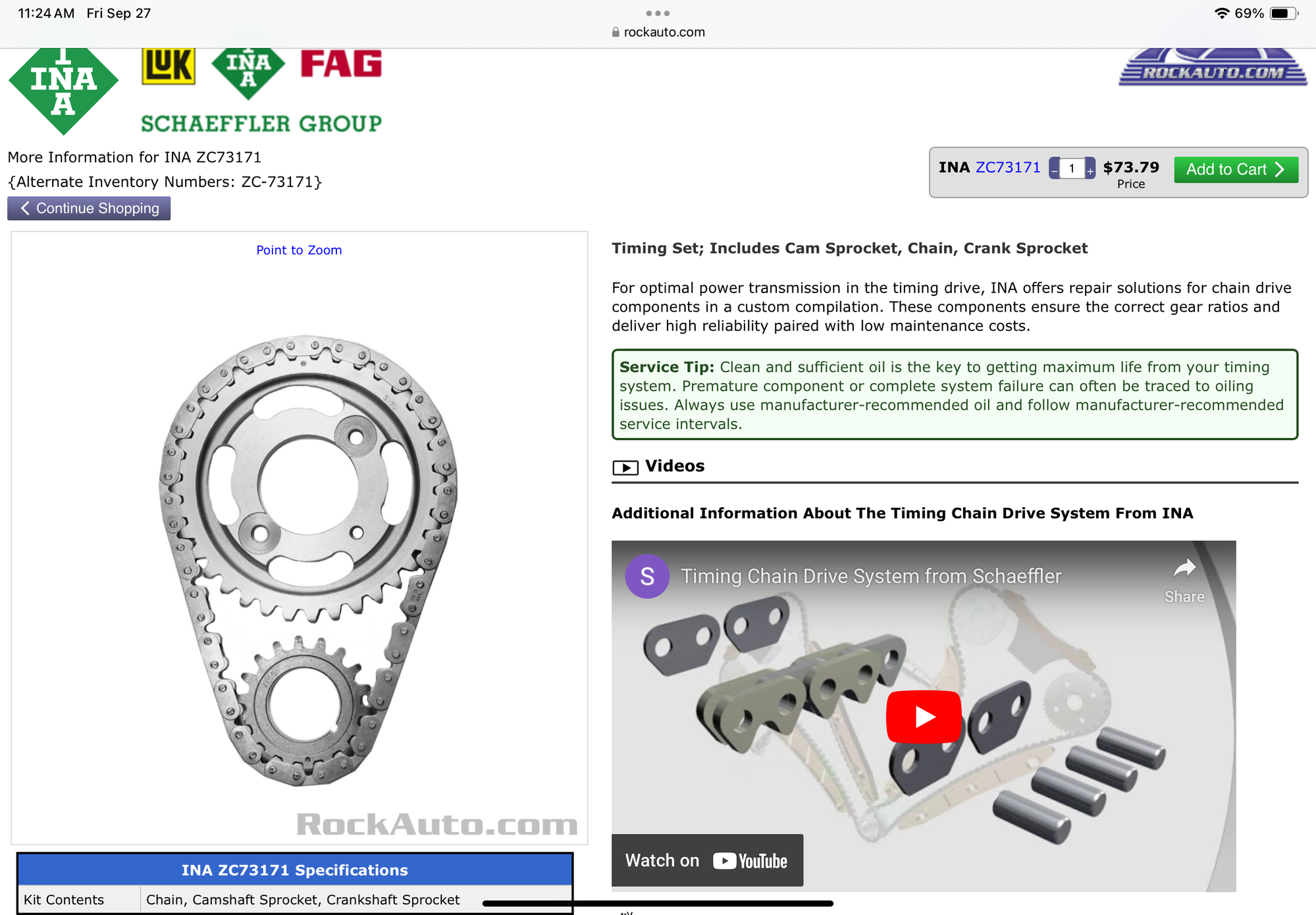 I always heard rock auto specifically does not service the state of colorado, anyway. For the internet, I have always used ebay, it is what I know. the timing chain and sprockets should arrive on 10/7, and cost 111, including shipping.