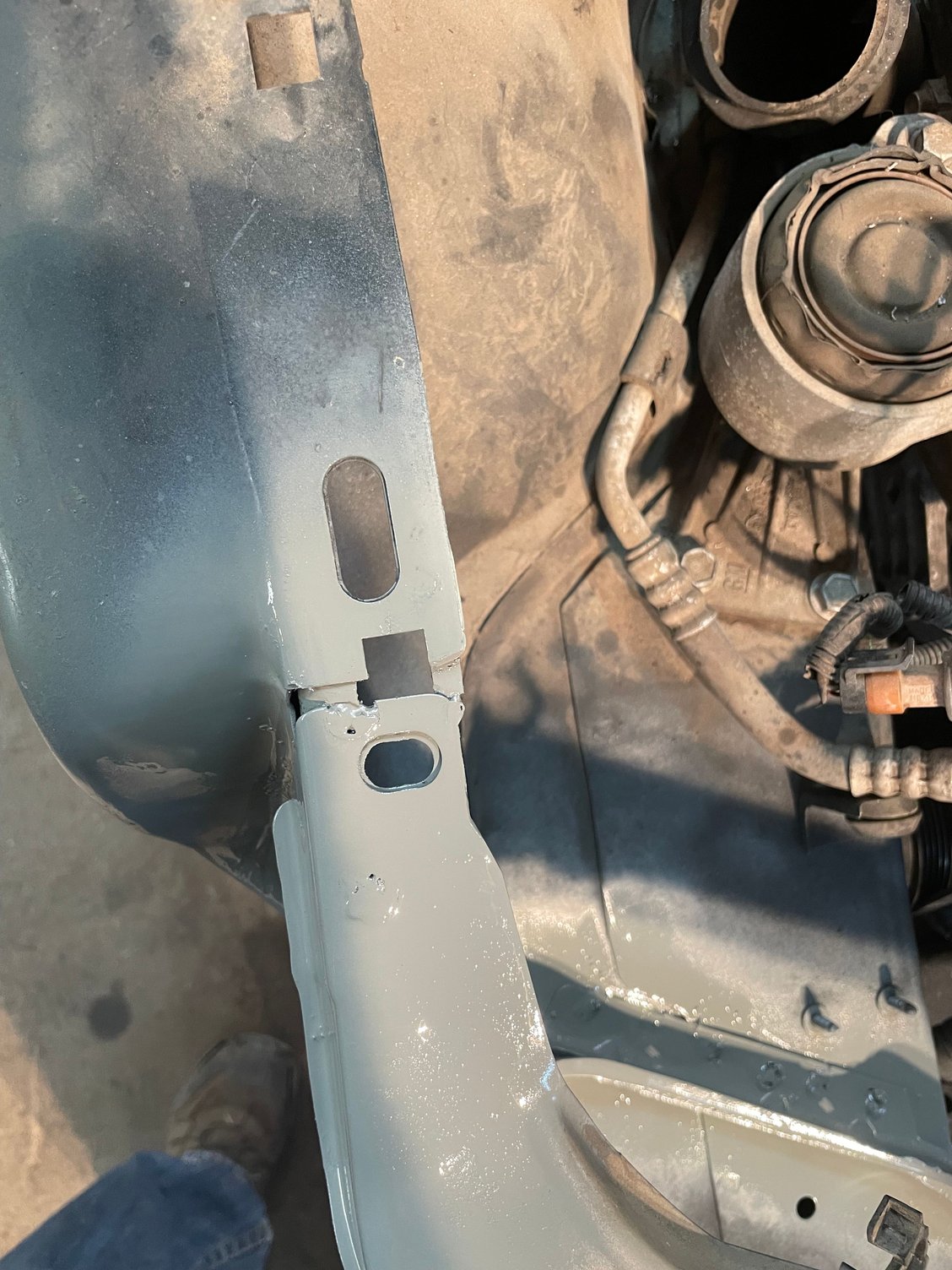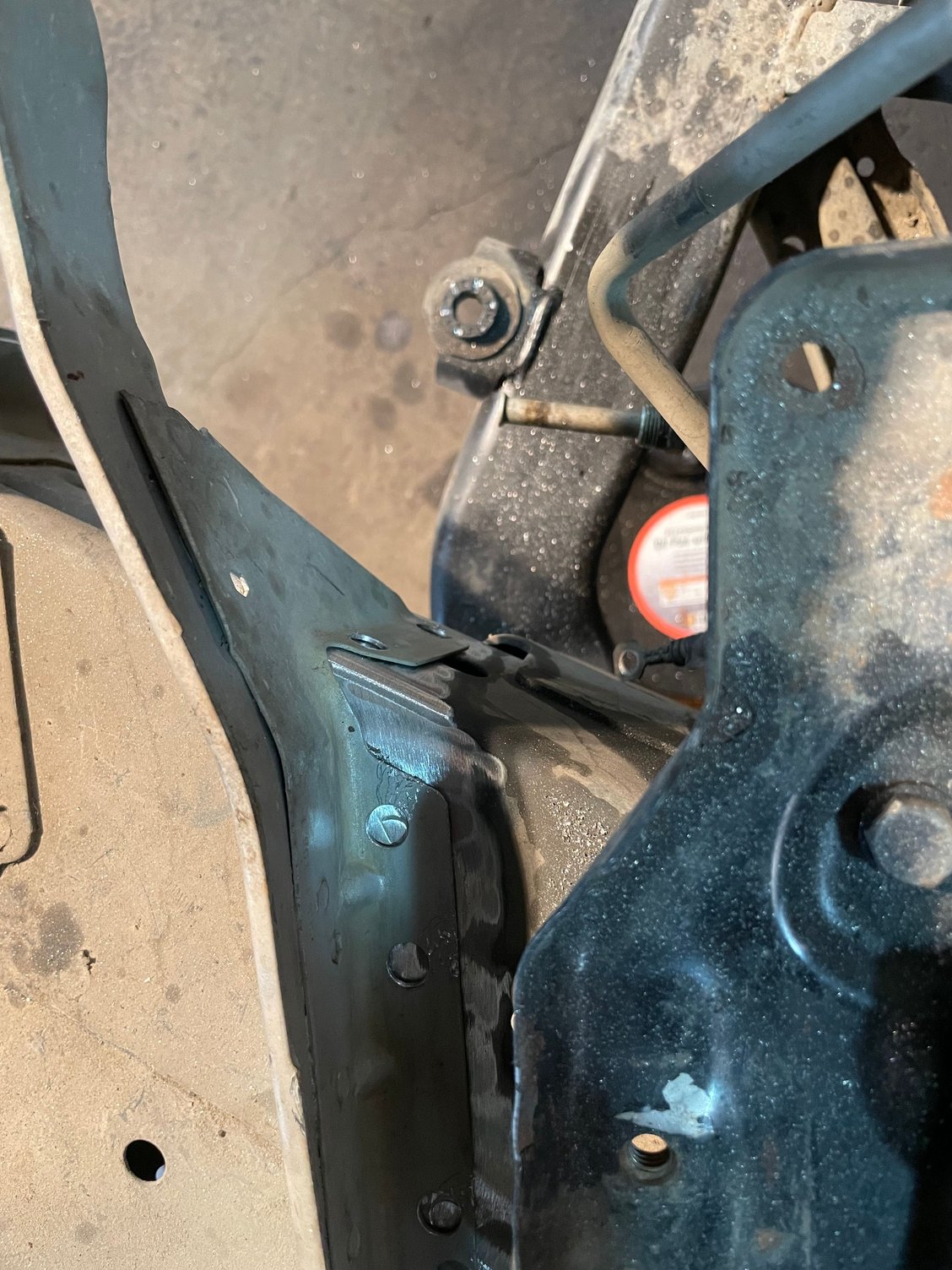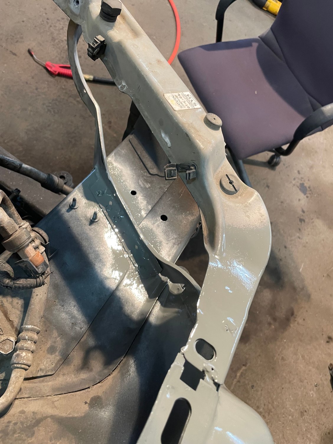 The bottom of the cooling group sits on the subframe on this series of cars. The top of the cooling group attaches to the rear of the upper core support. The cooling group is still intact and will be reinstalled after the upper core support is welded back in, in the next couple days. Removal and cleanup tomorrow, no rush I am just realizing.