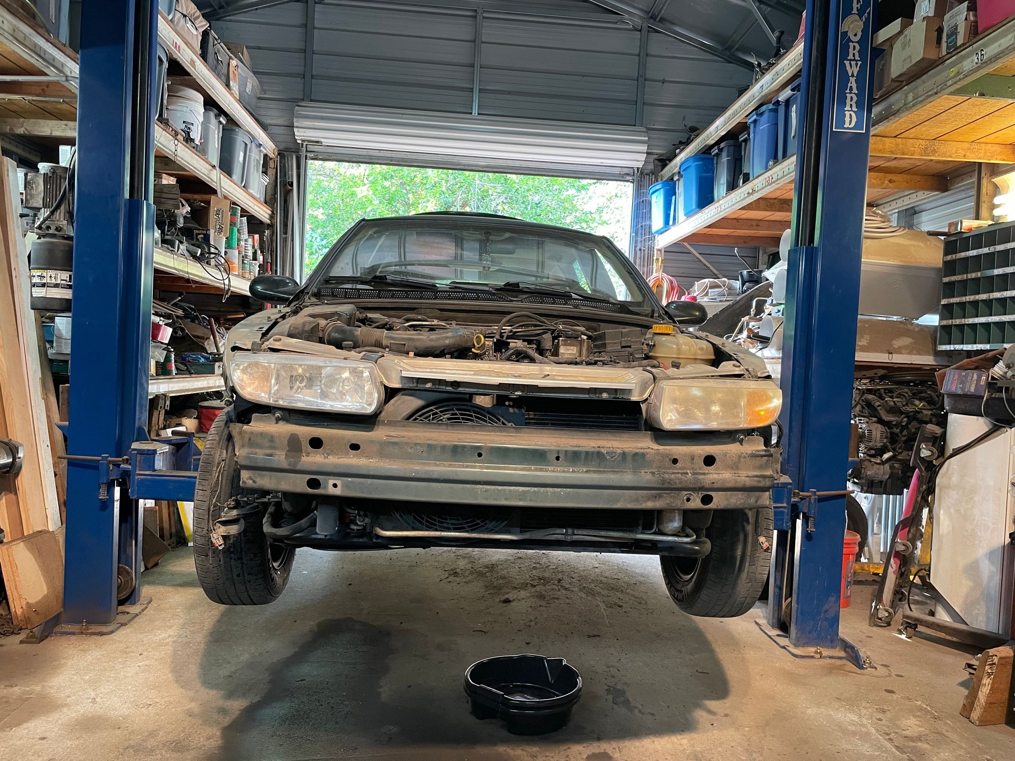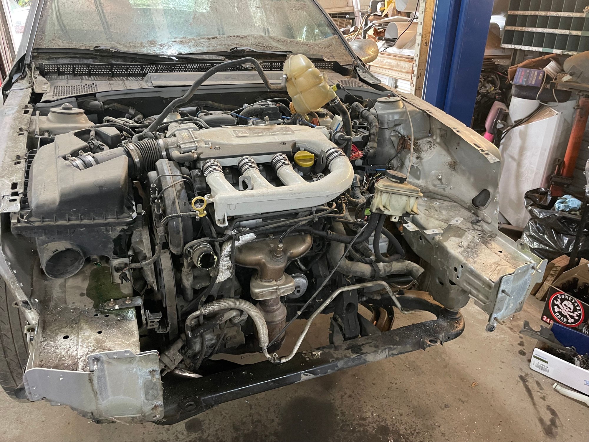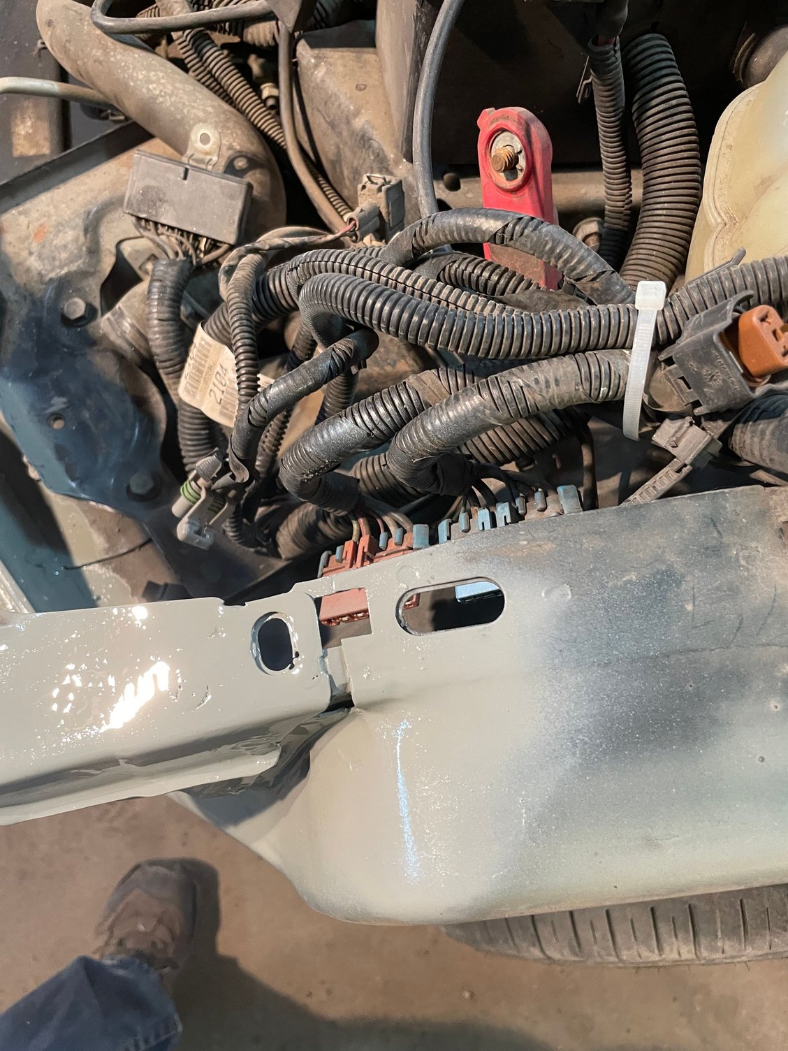 Big progress today, spent the morning removing the bent parts. Preparing to install the replacement upper core support, welder needed new tips. Trip to Harbor Freight. 😀
