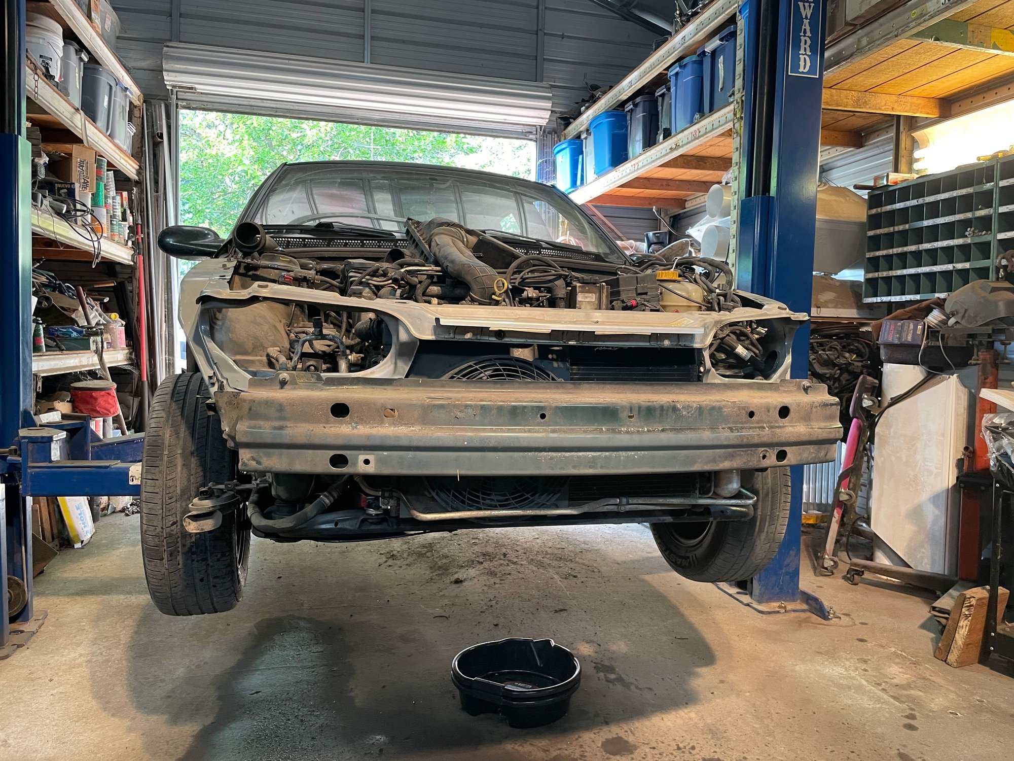I then pulled the parts car in that has been sitting in the driveway for years. It has a good 3.0 and a bad transmission. The tub is clean and a ready donor. Cleaned it up and started tearing it down. I will start on removing spot welds for the complete core support tomorrow. More pictures to come.