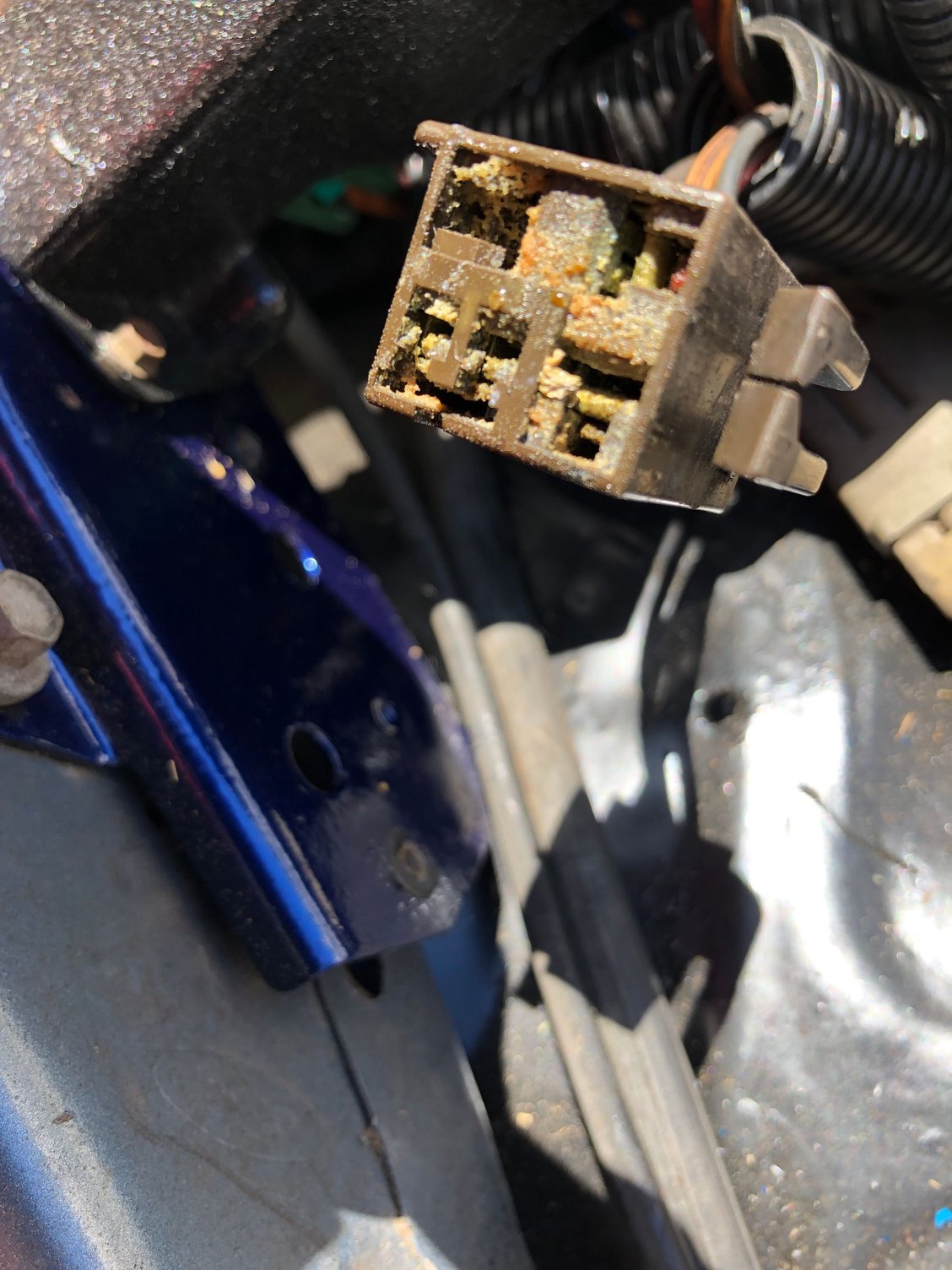 I was doing some house-cleaning yesterday and came across my replacement ECM power relay for the Crown Vic; that I thought I had already replaced. When I was done with all of the cleaning, I took some time to look at the Crown Vic ECM power relay. I discovered that I failed to replace that relay; I just cleaned the housing. I ran over to Home Depot and grabbed some contact cleaner and dielectric grease; went back home and did my thing. That relay was pretty cruddy. I'm letting it dry a bit; and maybe tomorrow I will connect the relay and see what I got. Not expecting much; but it does look a lot better than it did.