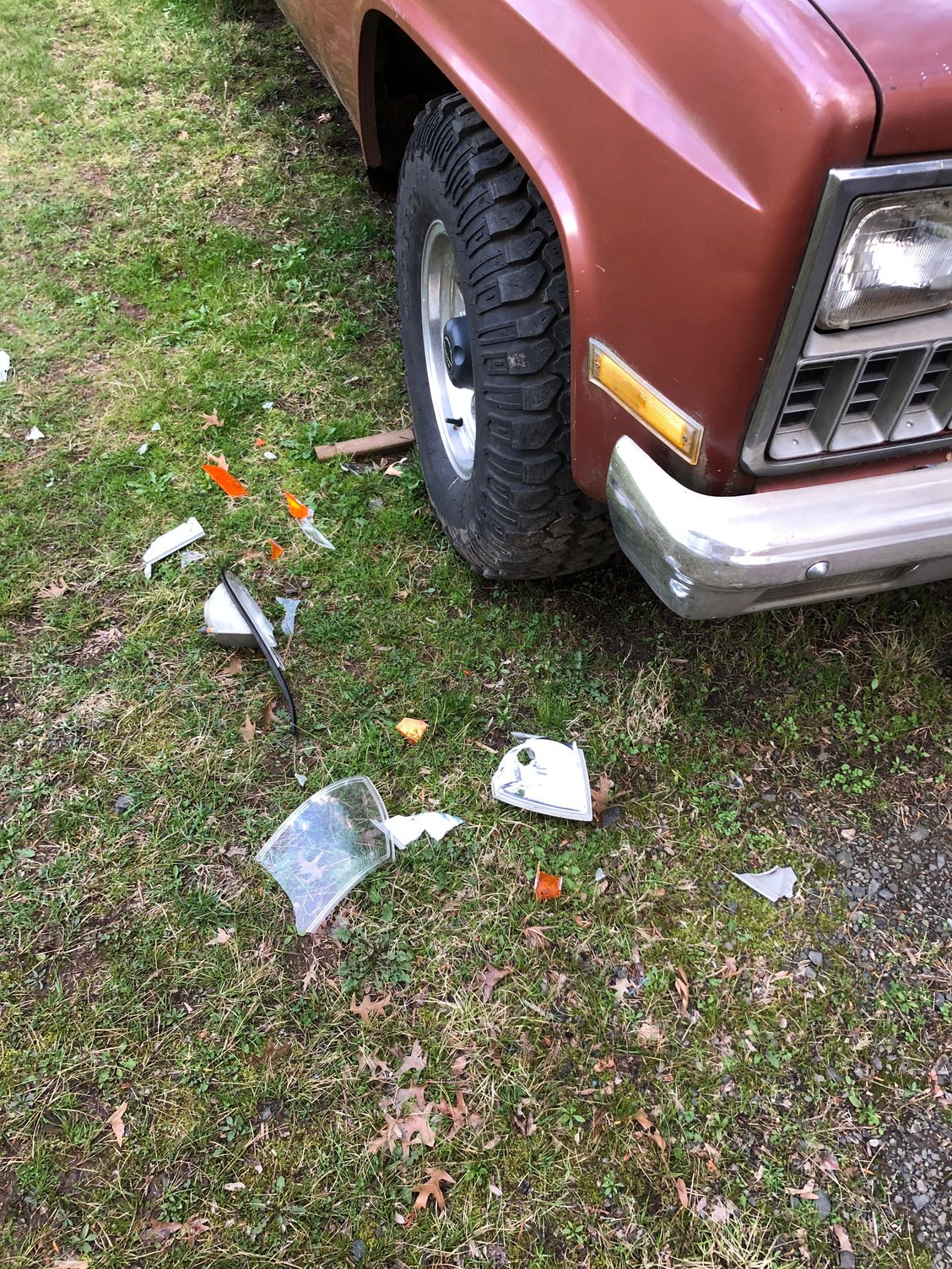 Result of me trying to shuffle the vehicles around in the backyard; in the rain; with tires that're clearly NOT for off-road use. When I started moving backwards, I was already rubbing Putter Project a little. I figured it was only a little rubbing. I was wrong. Spent an hour on Saturday fixing that bad bet.
