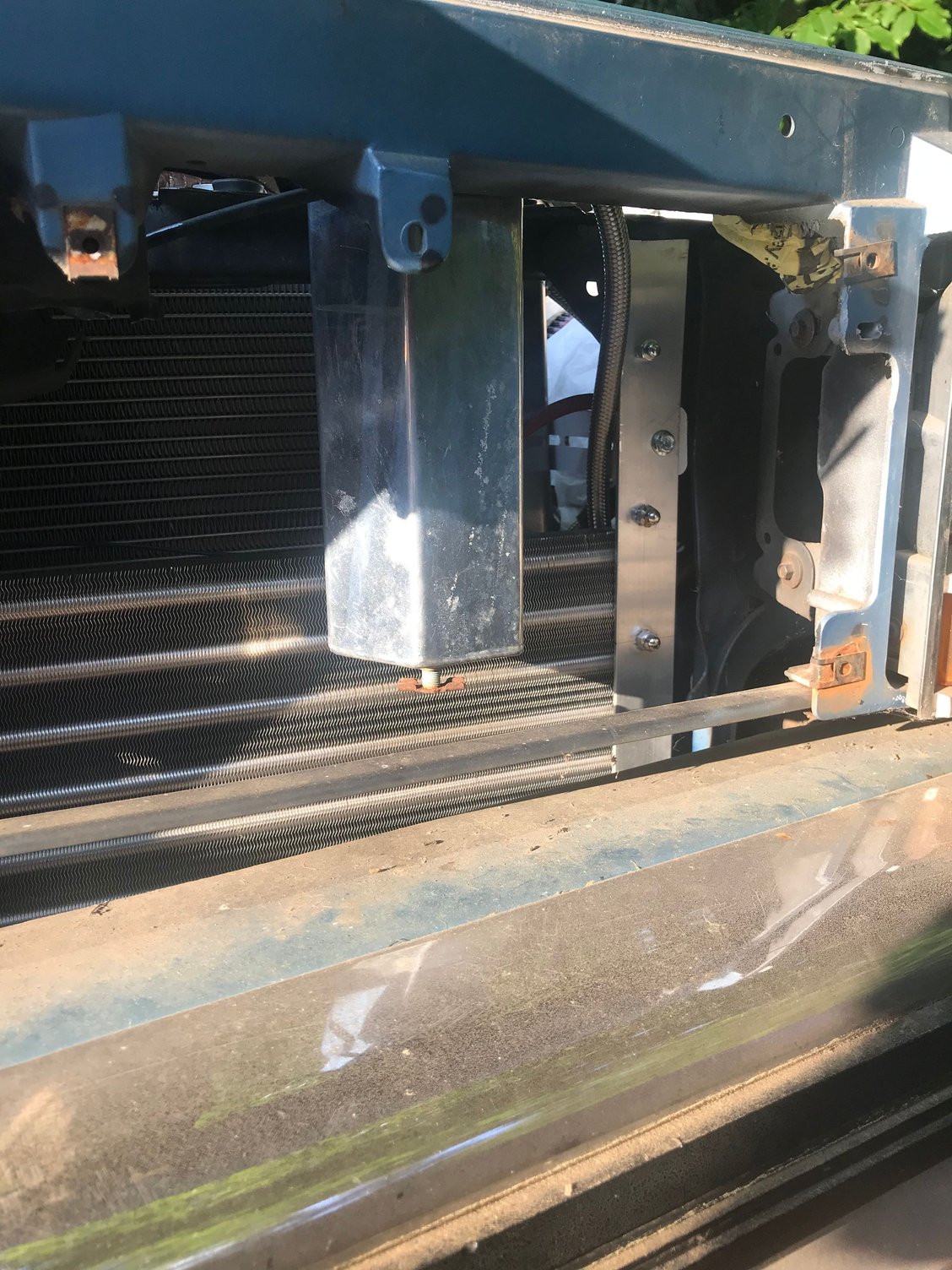 As such, I got off to a slow start today. I guess all of the shenanigans yesterday wore me out as I had very little figurative gas in the tank. As such, I installed my Aunt's a/c this morning. Then gathered my work laundry and brought it down to the laundromat; been over a year since I've been able to do that. Whilst waiting for the laundry to dry; I went home and removed the driver's side header in order to get to the threaded freeze plug. Those allen bolts made the header removal easy. Tapped the freeze plug hole and threaded in the NAPA plug. Went to fill up the coolant and heard nothing dripping or pouring out underneath the car. I could hear the radiator tank filling up when I realized that I hadn't installed the coolant reservoir. Dug the old JEGS coolant tank out of the basement and cleaned it up a little. Went to install it and realized that it won't fit where I had it because the relocated pcv catch can is in the way. I saw a spot to hang it in front of the trans cooler, but I didn't have enough 3/8" hose to run; so I got what I had left of my 6AN line and ran that to the radiator; only to find that the radiator port is too big. Removed the coolant overflow reservoir and went into the basement to find anything that I can make work. Found a short length of 8AN and a reducer fitting. It was dark by the time I assembled everything; so I packed it up and covered the CV. I will see how it all fits tomorrow. Gonna eat dinner and maybe install the living room a/c.