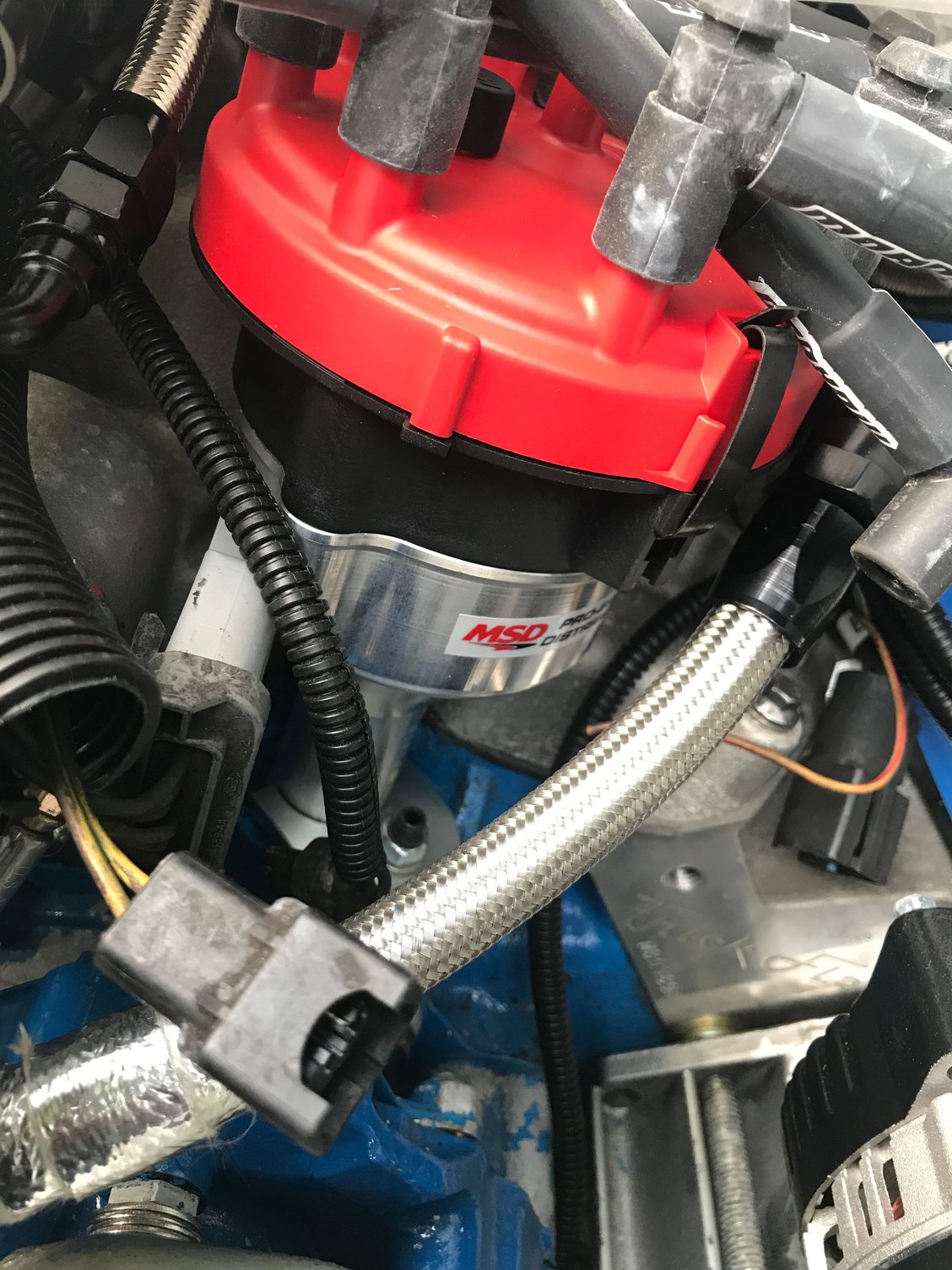 I tried to attempt a 1st start 2 weeks ago; but the weather and sinuses the following day sidelined me. Finally got to it last Saturday and ran into issues. First off; I had a pickle of a time finding TDC on the compression stroke of #1 cylinder. I loosened up the spark plug and heard nothing. So I took a small wad of paper towel and jammed it into the spark plug hole; in an attempt to see it blow out on the compression stroke. That didn't happen; perhaps I didn't jam it in there enough? So I had my Dad come out and stick his finger in the hole while I turned the engine over. I heard hissing; but he said he felt nothing on his finger. I'm not sure how tightly he had his finger in there; but I told him he must be mistaken because I could hear the hissing from that side of the engine. I turned it over some more and I guess he loosened his grip as the second time I heard hissing, he said he could feel the pressure. I may check cylinder pressure when I get this thing running to confirm I got proper compression. After all of that cranking, I took a break because I'm not 20 years old, and all that work made me tired. So, when I got back to dropping the dizzy, it was already running late. But I decided to prime the engine anyways because I would only be running it for 20 minutes. Primed the engine and killed my $50 drill. Once it built pressure, the drill started to labor, and after a minute of priming, it smoked and burnt out. Tried to drop the dizzy and found that my fuel rail fittings were in the way. Not too bad of a problem; as I got my AN wrench, loosened them up, and rotated the fitting for clearance. Then I clocked the dizzy; first time doing so by myself btw. I noticed that it was dark out. So I quit and tried again on Sunday. I cleaned my Milwaukee drill (the one I used for the Saturn oil changes) and primed the engine again; then reclocked the dizzy. Hooked up the battery, climbed in the car, and went to load the tune. I noticed that the dome light wasn't working; figured it might have burned out or sumtin over the years. So I turned the key to power on the system and get the Quarterhorse activated (I think that's how it works, instructions are vague). But nothing happened; no lights; no relays clicking; no fuel pump priming; nothing. I was stumped. Went out with the test light and found no power on the right pole of the starter solenoid; just the battery side where the battery and starter power cable are hooked up to. My Dad came out and discovered that he could bump the starter by applying power to the relay pole on the starter solenoid. So we confirmed it was an ignition issue. I spent the last 2 days scouring the net for diagrams and discovered that I may have switched the wires to the wrong pole when I took the original engine out. All of the fusible links along with the starter power cable go on the B+ pole of the solenoid. So, when I go back out there, maybe tomorrow, I will switch it all over and see what happens. After confirming that is what I did.