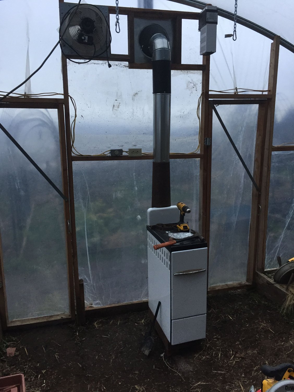 Been working on the greenhouse this weekend. My daughter is starting an organic vegetable starts business. She will be starting from seeds and wholesaling them through a couple local organic produce outlets. We will be heating only half of the greenhouse for the starts. This is a small wood burning stove for some extra heat. She also has a couple 1000 watt grow lights plus a couple 200 watt smaller grow lights for the starts. Should be nice and toasty inside. The grandsons will screw lath over the gaps on all the roll up sides until springtime. Back to the LS1 next weekend.