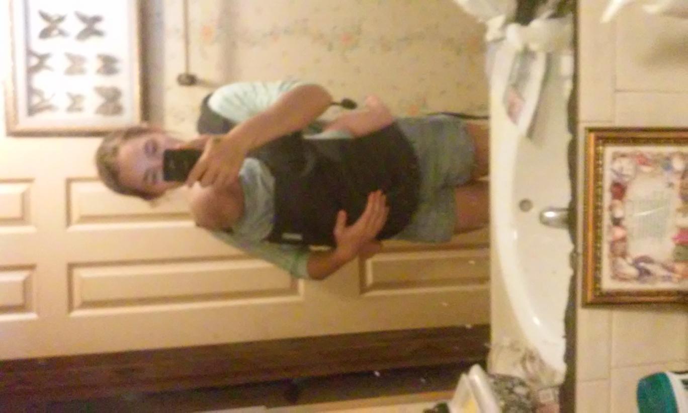 We got a new carrier that distributes her weight a lot better and that we can use for longer periods. Just got it today so we're still getting use to it but we did a walk already and she fell asleep. I'm a happy mama now