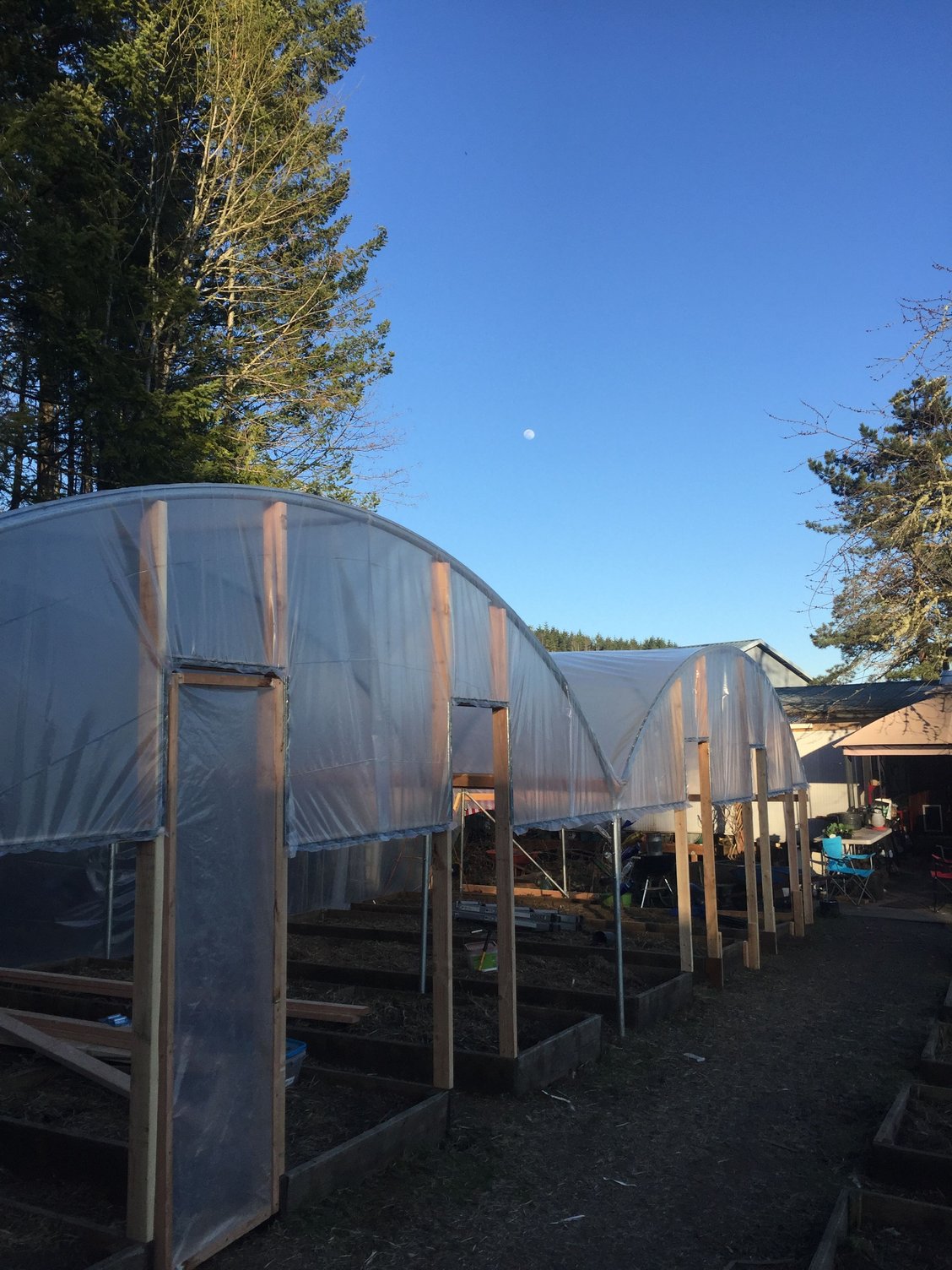 The last two weekends have been this project. It is 15x40 and I still need to finish. Today I got the plastic secured. It is over 6 raised beds and will allow a longer growing season.