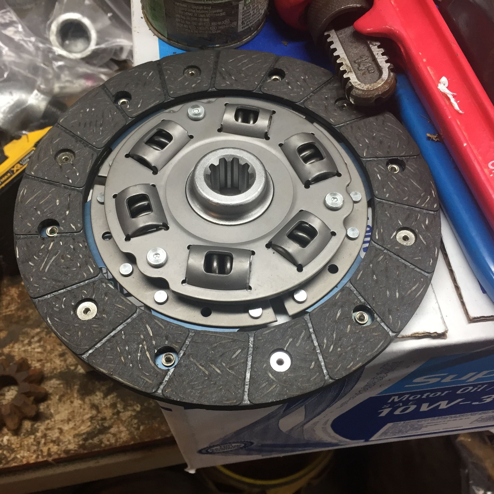 Now that I have the bellhousing off I have discovered that I purchased the incorrect clutch disc. See the above picture for the incorrect clutch! My Massey Ferguson 1210 has 13 splines not 10 splines. The clutch is only 7 and 1/4” od but it looks like a 20 lb flywheel maybe more. The tractor is only an 18 hp 3 cylinder Diesel NA. The local tractor repair shop and wrecking yard will send my disc to the clutch shop in Portland for a reline. Under $100 and back in business. Done for today it is cold in the shop and we have a nice fire going in the wood stove in the house.