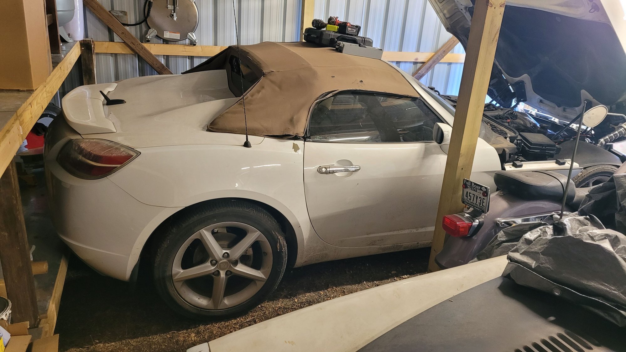 I am parting out this 2007 Saturn Sky. Needed to much work, parts, and have other projects. Runs and drives. Missing the exhuast that's why it sounds like that in the video. Has 179208 miles on it. Has the LE5 2.4L Ecotec inline four cylinder engine. If you are interested in a part let me know. It has been sitting in my barn for 8 months drove it in there and haven't messed with it since. Clean title. Will sell the whole car for $3000. Hate to take a cool car off the raod but I know this one isn't very desirable and hope I can help others keep their babies on the raod looking sharp. I will update the post as I get interest and as I look more carefully at it. Front bumper has damage, both fenders broken at rear bottom, rear tail lights cracks in the plastic, windshield has large chip. PM with questions. I can take some specific pictures if requested.