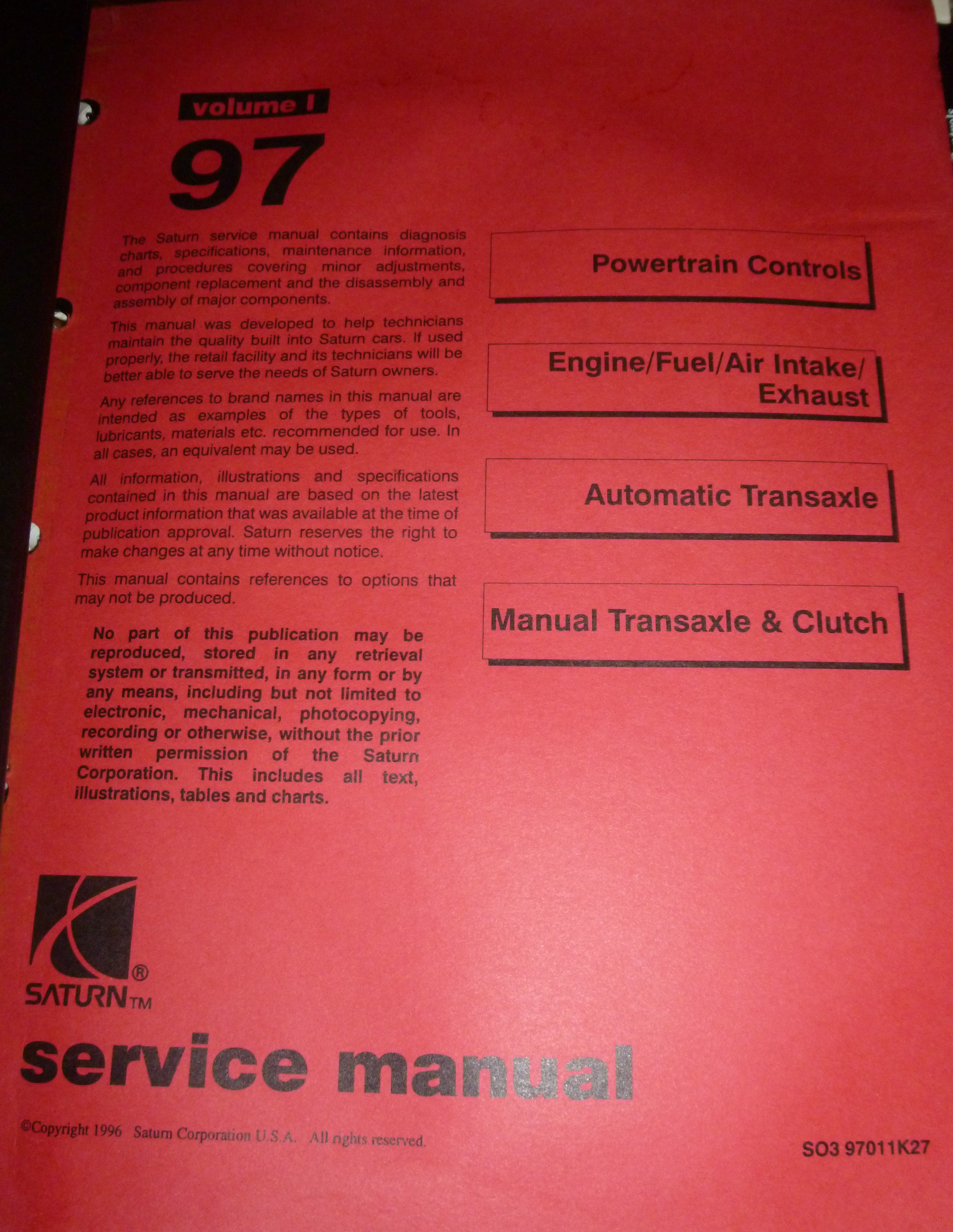 Default 97 saturn factory manual set 3 binders
