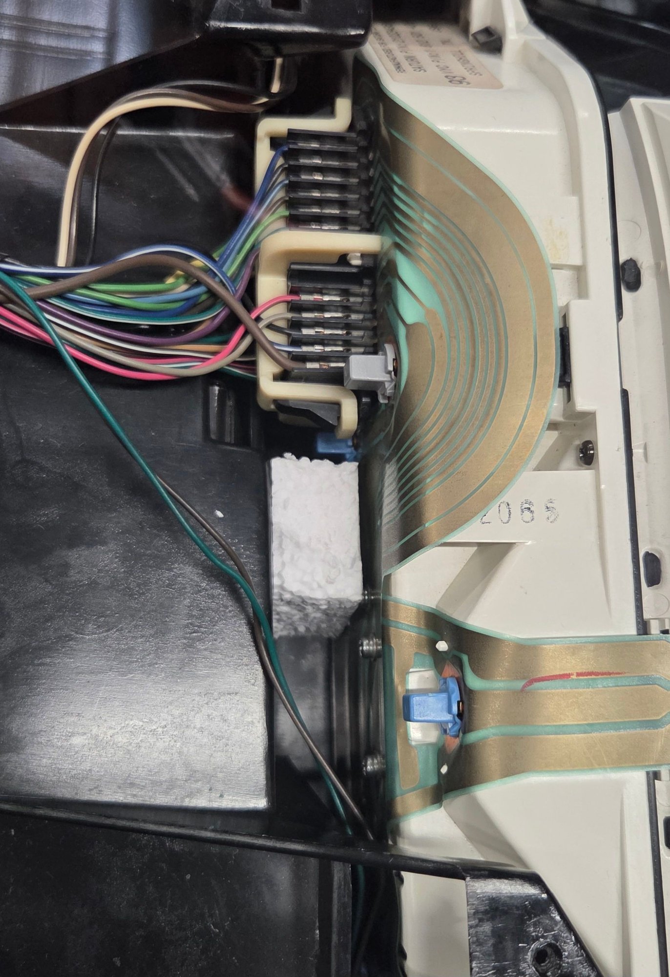 Simple solution to keep the odo plugged in, a small block of Styrofoam that fits snugly. The tach and speedo connectors have more pins and are more secure.