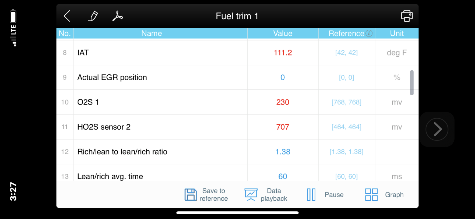 But I did take some screen shots of live data at idle, after I came home from driving around, shown below.