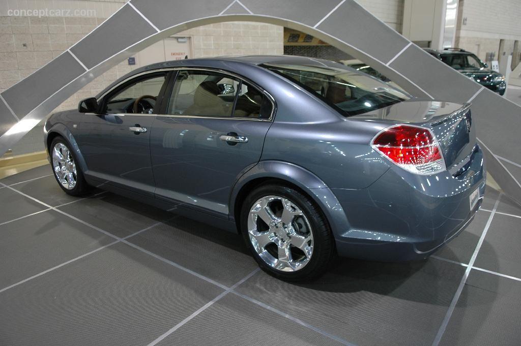 This is the 2005 Saturn AURA CONCEPT vehicle. IMO, this was a bad-***-looking AURA! The body styling was quite aggressive for a "family sport sedan". The rear centrally placed exhaust, aggressive skirt front, fenders and rear, the highly polished crome wheels and the faux hood vents all looked GREAT! Note the missing door chrome. Unfortunately, it got dumbed down for us mere mortals. That notwithstanding, however, the AURA is still a GREAT looking car!
