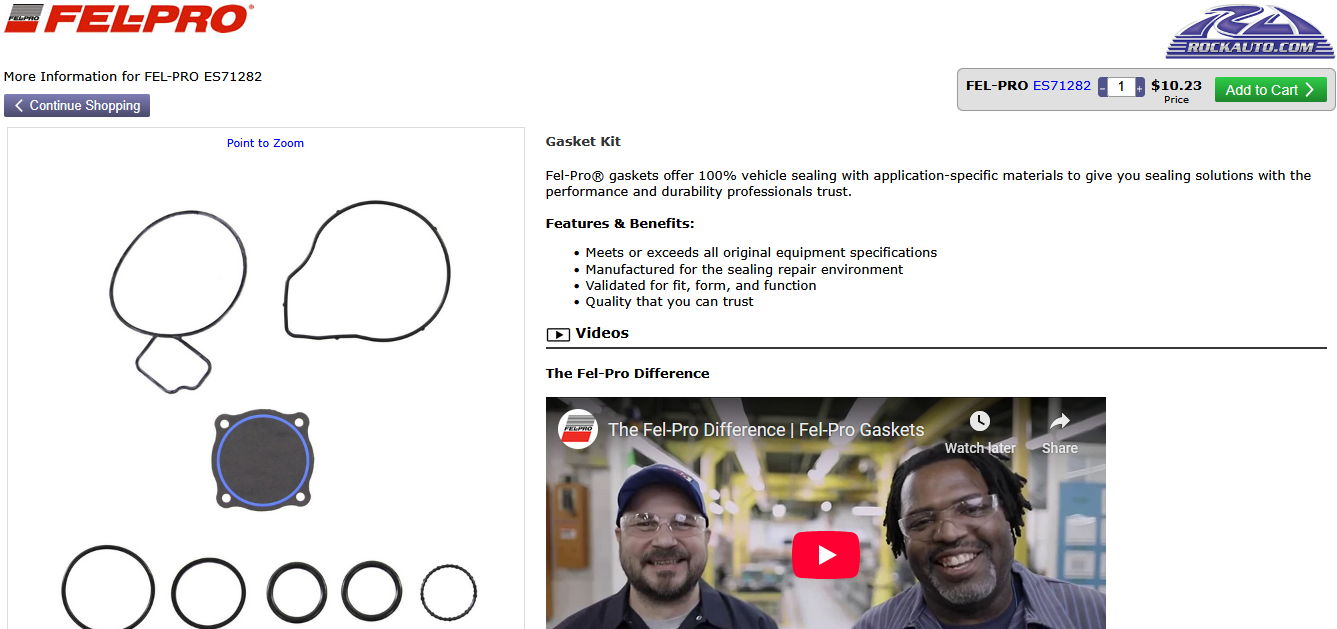 I did not see a suggestion from him about the water pump gasket. Did i miss that? Or are you referring to the one i posted in post #26 |