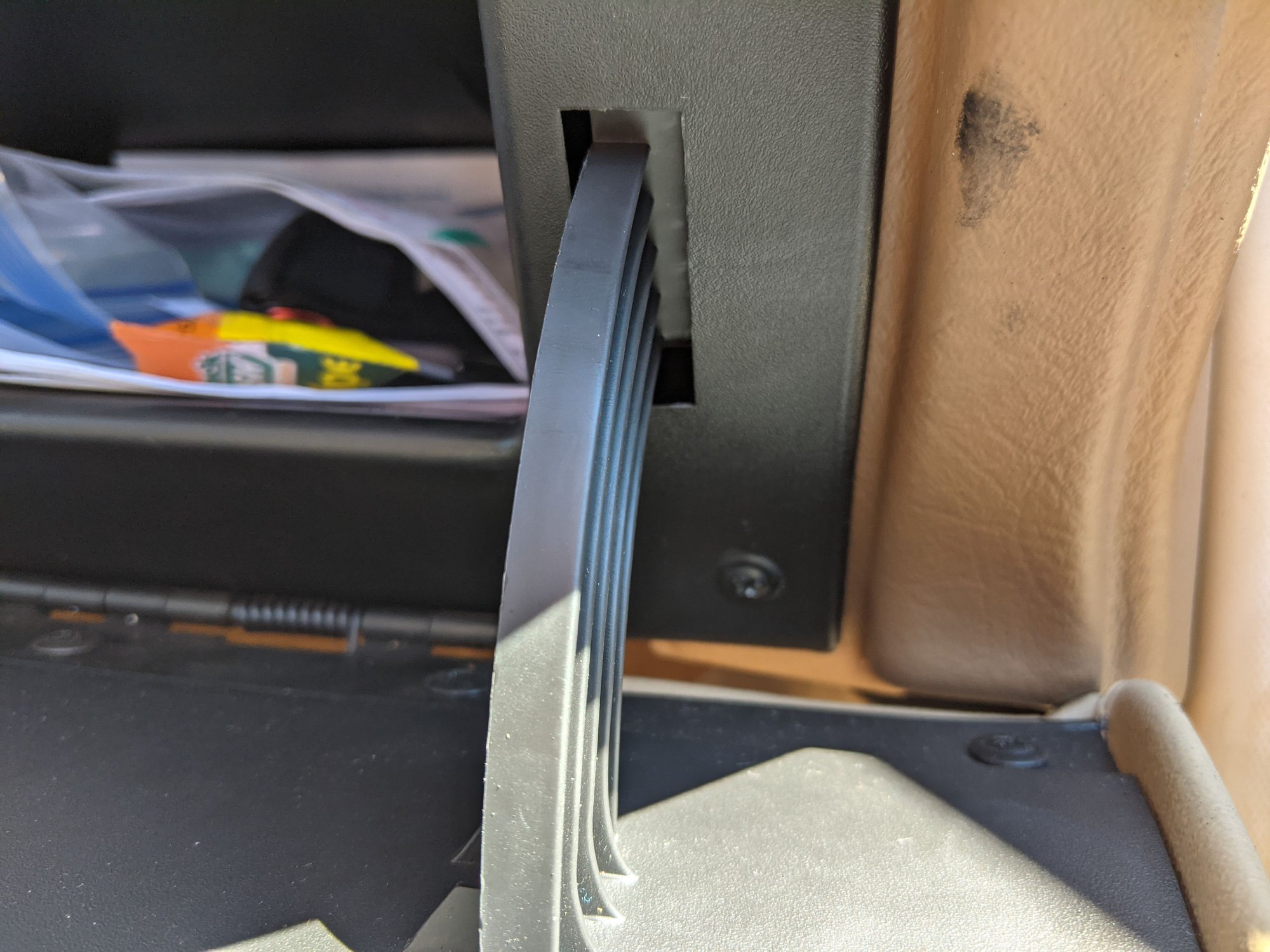 Unscrew the door from the hinge and the door will lift out. Same thing with the glove box liner itself, remove all the screws.
