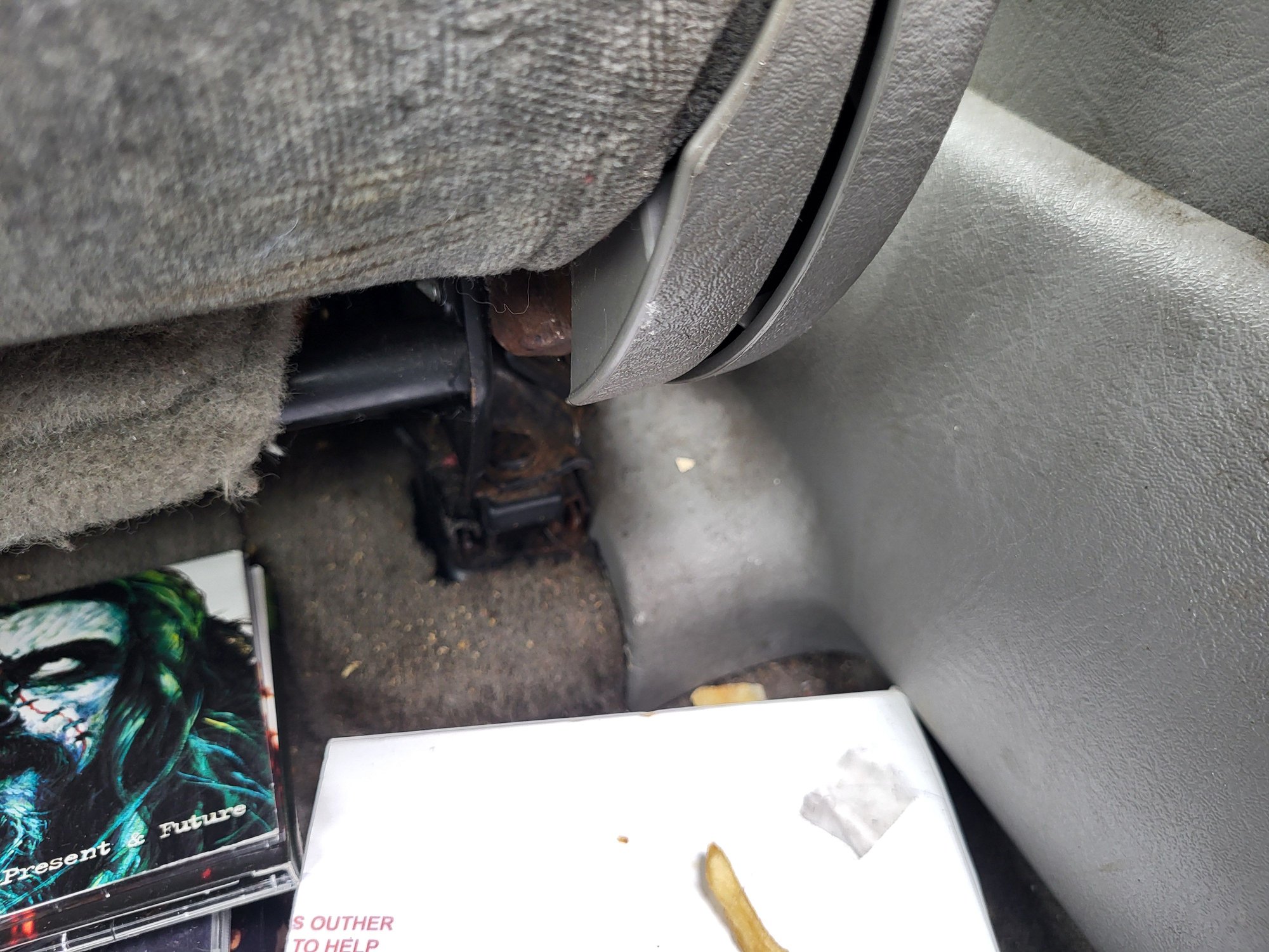 Oh, check to see if there any fries stuck in the back of the seat track.