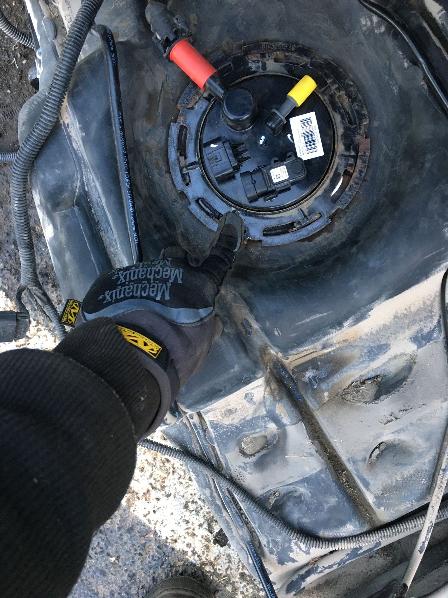 Remember to relieve the fuel pressure in the system at the Schrader valve with a rag over it before you attempt to disconnect lines in the fuel system or drain the tank.