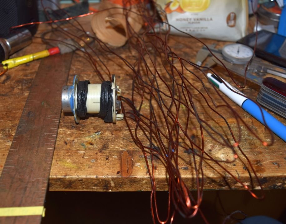 shown is the 500 turn rewind i did to run some tests on the plunger for permeability and the pull-in coil for inductance,