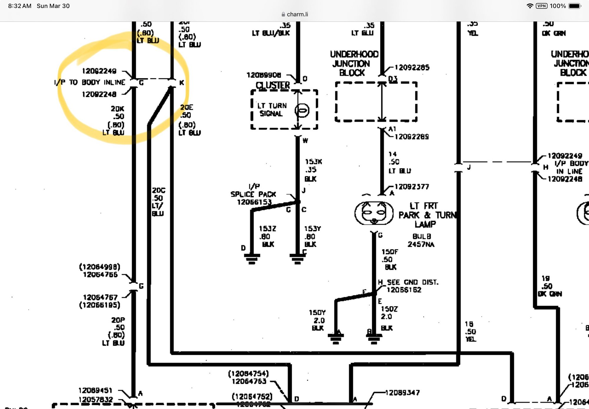 That's the one spot in this wiring diagram I do not understand. If there are two separate 12 volt runs, what does the "c---k IP to body inline" signify? Are the two supply voltages not already separate?