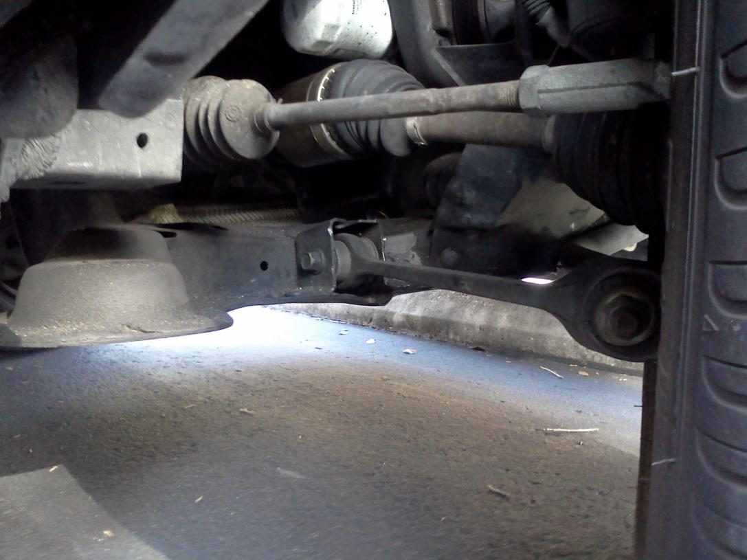 Quick background here. I was draining my GF's coolant the other day, and while I was under the car noticed this massive bolt missing from a piece of the front suspension. Apparently she had hit something with the front right of her car before I had met her and took it to a shop to get it fixed. I guess they didn't do too good of a job. In the pics you can see the piece hanging down. My question is what is the name of this part and bolt such that I can buy it online and connect it back up myself. I have an idea of how to go about it, and am pretty well seasoned in mechanics for a normal Joe (I've rebuilt a few chevys in my day). I just need to know what bolt/stud to buy. The car is a Saturn SL2 01 1.9 liter. Shes been driving it like this for a while, but it needs to get fixed. It makes a serious noise as she goes over speed bumps. You can tell the sound comes from the right side. I figure I'll need to get an alignment after I get this piece bolted together. Any thoughts are appreciated. Attachment 403 Attachment 404 Attachment 405 Attachment 406 For reference, the one pic directly above shows the left hand side where the part is properly bolted to the car. Thanks, Sean |