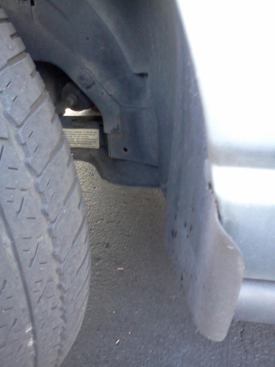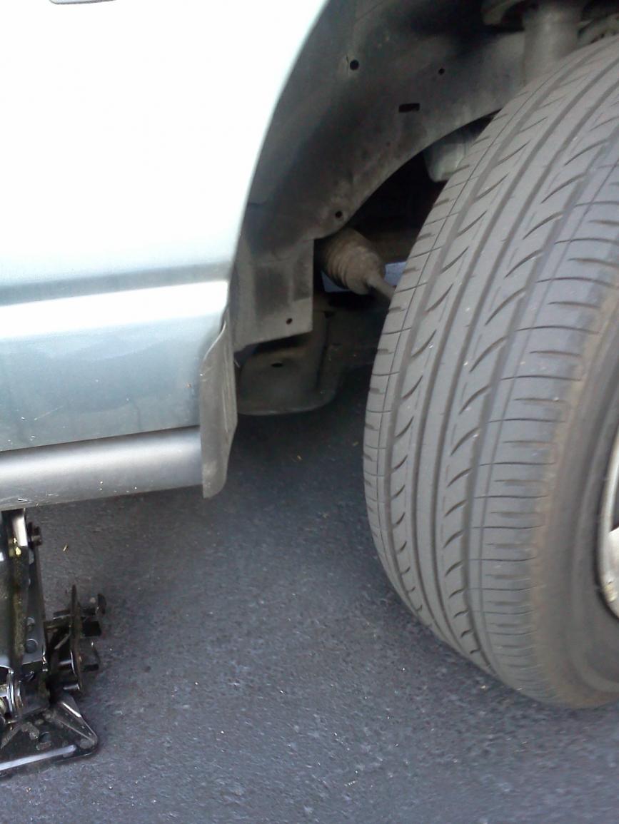 The car is a Saturn SL2 01 1.9 liter. Shes been driving it like this for a while, but it needs to get fixed. It makes a serious noise as she goes over speed bumps. You can tell the sound comes from the right side. I figure I'll need to get an alignment after I get this piece bolted together. Any thoughts are appreciated.