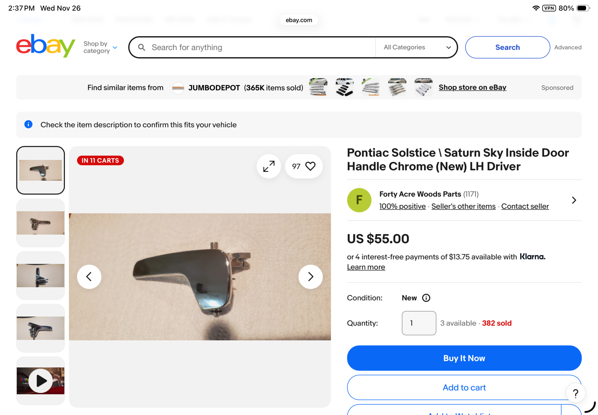 The chrome on the edge of the interior door handle is coming off, so I would like to replace it. I have searched around, but can't find a parts diagram to look up the part number. Does anyone know the part number of the chrome handle, not the outside, but the little inside handle
