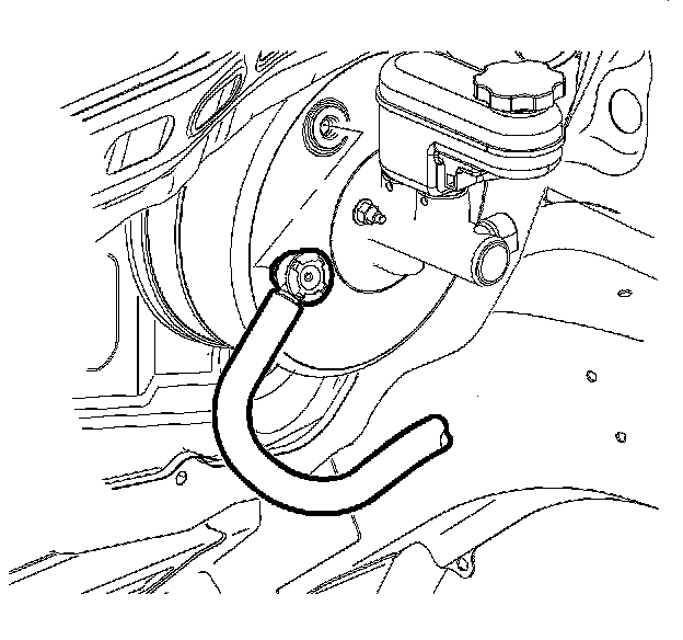 7. Disconnect the vacuum booster check valve and hose assembly from the booster.
