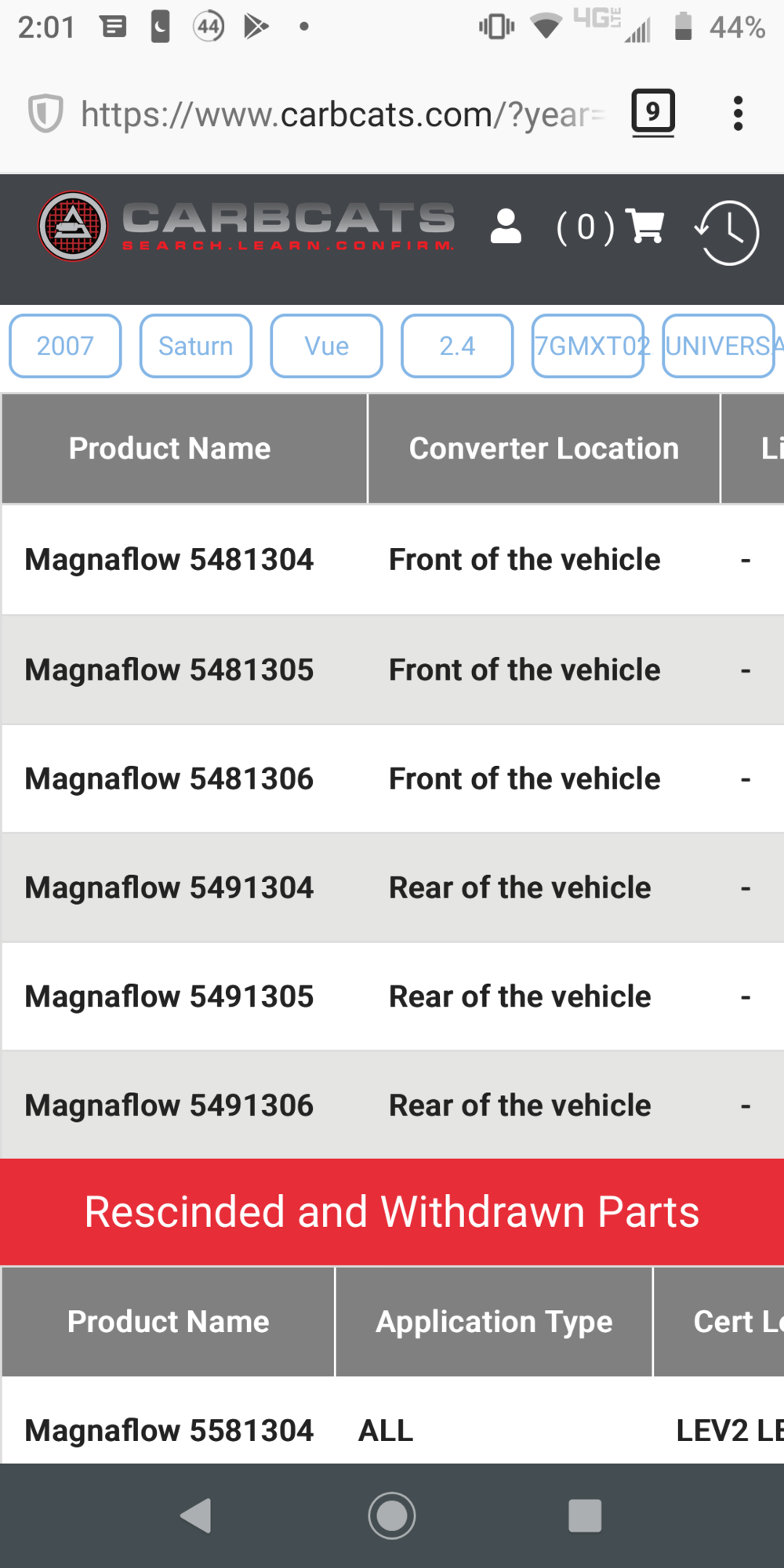 I found the following on the carbcats website. The executive order number allowing for these aftermarket parts to be exempted is in the screenshots below. I think. Can't get the damn thing to open. There may be other manufacturers listed in there. Apparently the only way you can get a waiver is if absolutely no one makes a converter for your vehicle anymore. I have not yet tried to look up the magnaflow products and I do not understand why there are three for the front and rear. Seems there should only be 2 each.