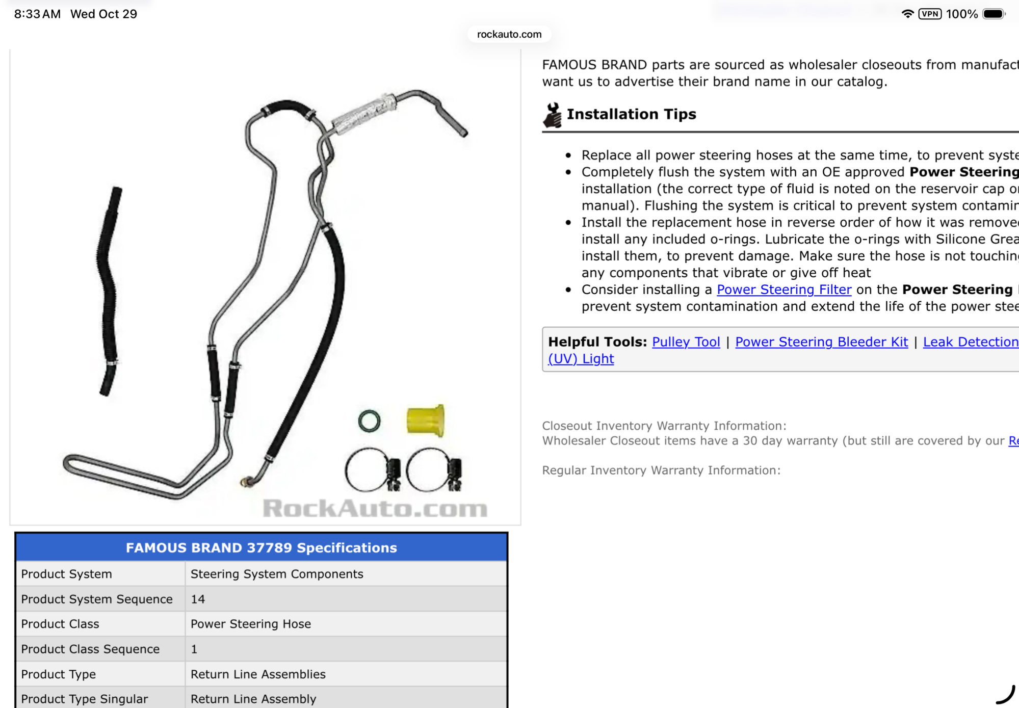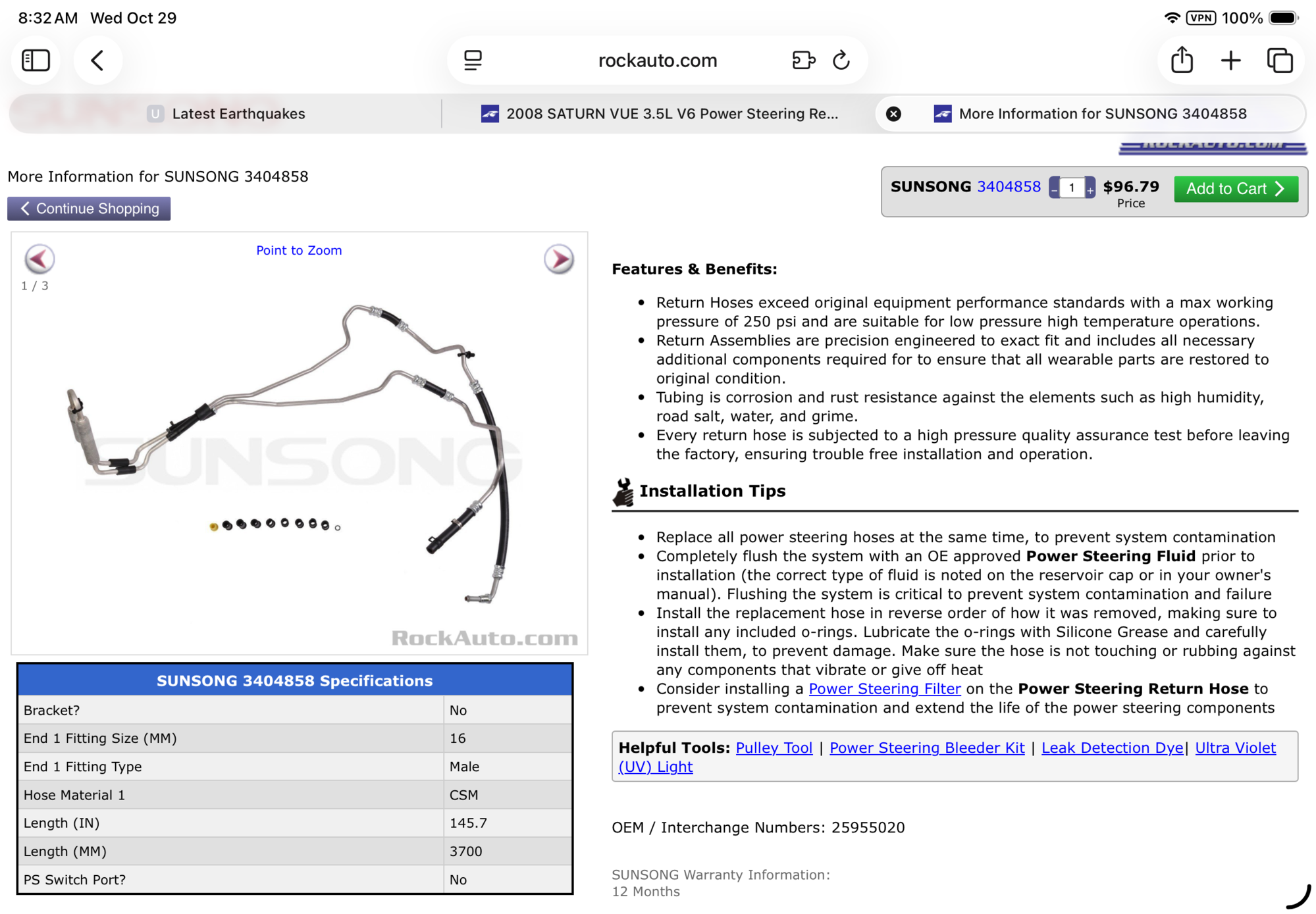 2008 Vue Power steering return line