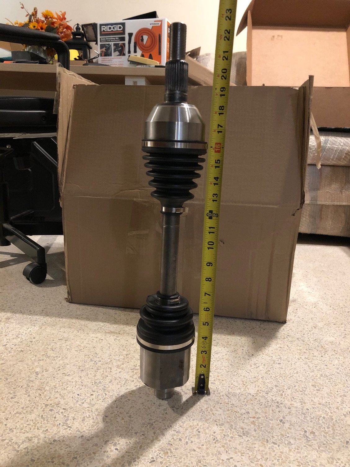 Just to compare, I looked up a listing of the original "Discontinued" part. Dimensions list it as 28". But it does not specify if it's a "compressed" overall length. Although, it is interesting that a remanufactured original from Cardone is 22.38" in length. It leads me to believe that perhaps I was measuring the original axle I pulled from my car in an uncompressed state as I had layed them down flat on the floor, as opposed to standing up on one end when comparing the lenthgs.