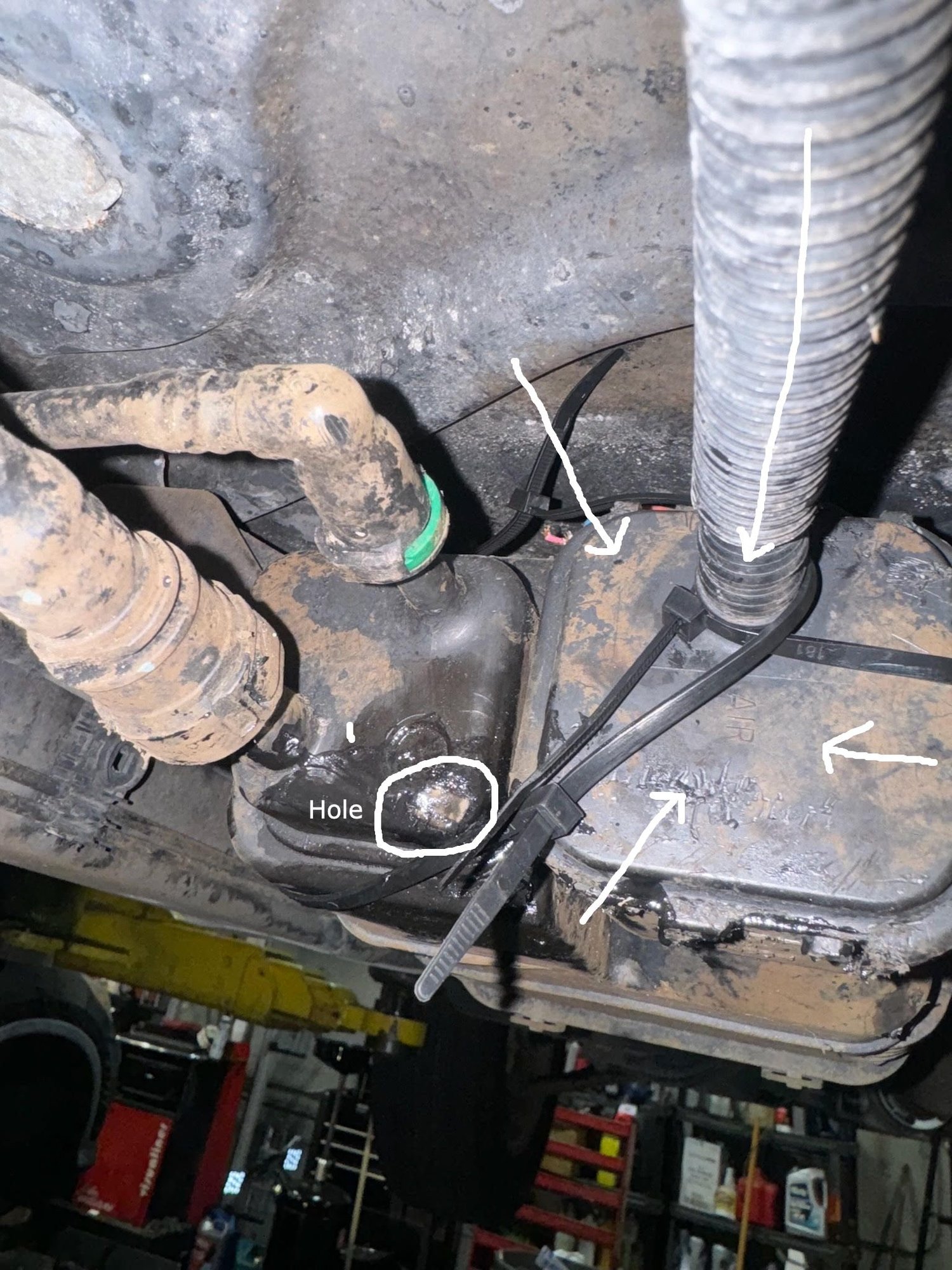 I have the new canister and evap valve to simply switch out. You can see the previous owner has put zip ties on for some reason. Does anyone know what and how this flexible grey hose and plastic square (see pic) affixes to the canister itself?? What should hold this instead of zip ties??
