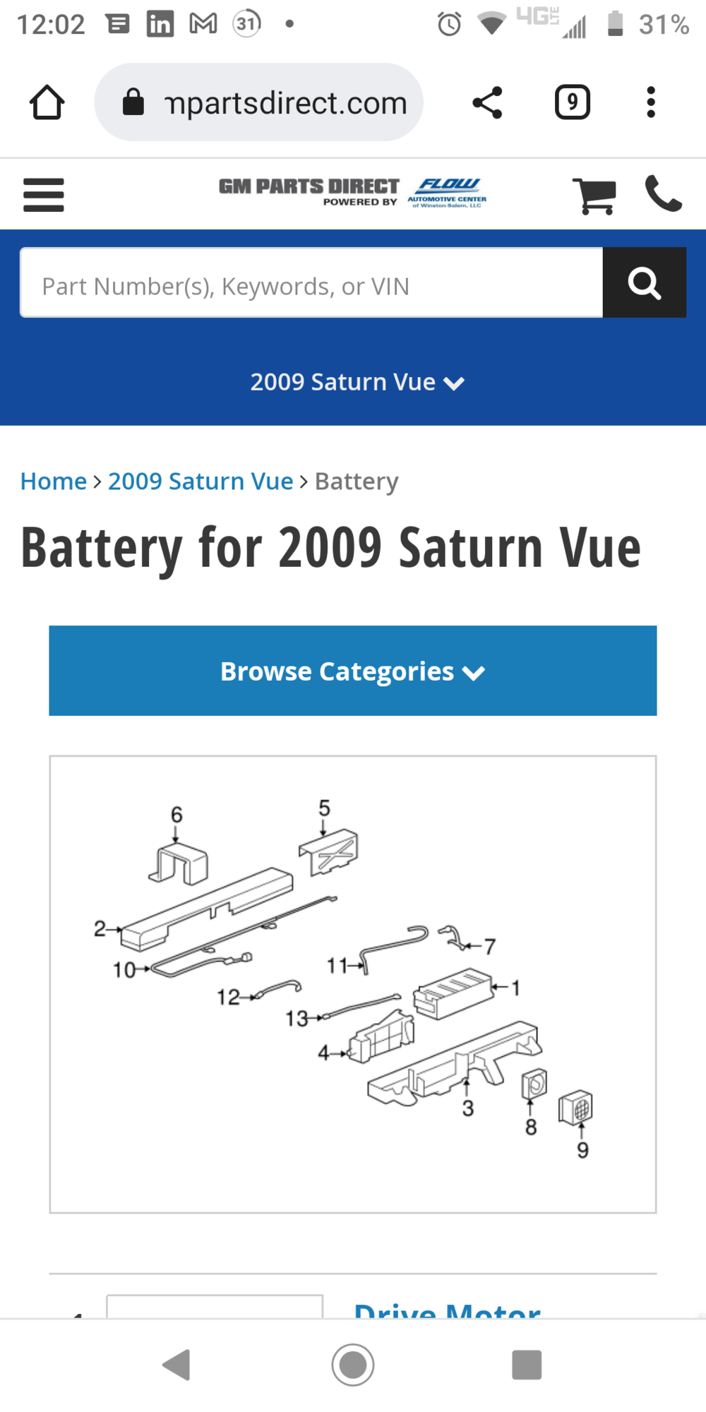 Parts listing in middle of page. Note that descriptions next to other components state for Malibu, aura,... Not the Vue Supposed battery for Vue Green Line Fitment shows only 2007 Green line Vue